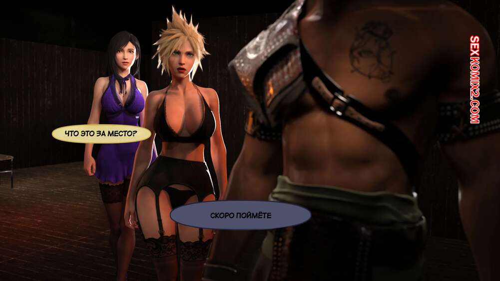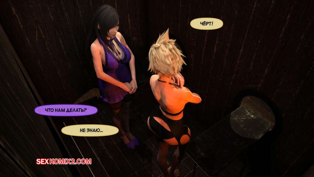 Порно комикс Final Fantasy. Тифа неторарэ. Часть 5. Tifa NTR. Scyxar Studios Красотки оказались в глорихоле, где их уже поджидало два черных члена. Красотки разделись и раздвинули ножки, после чего приняли в себя их и получили огромное удовольствие.