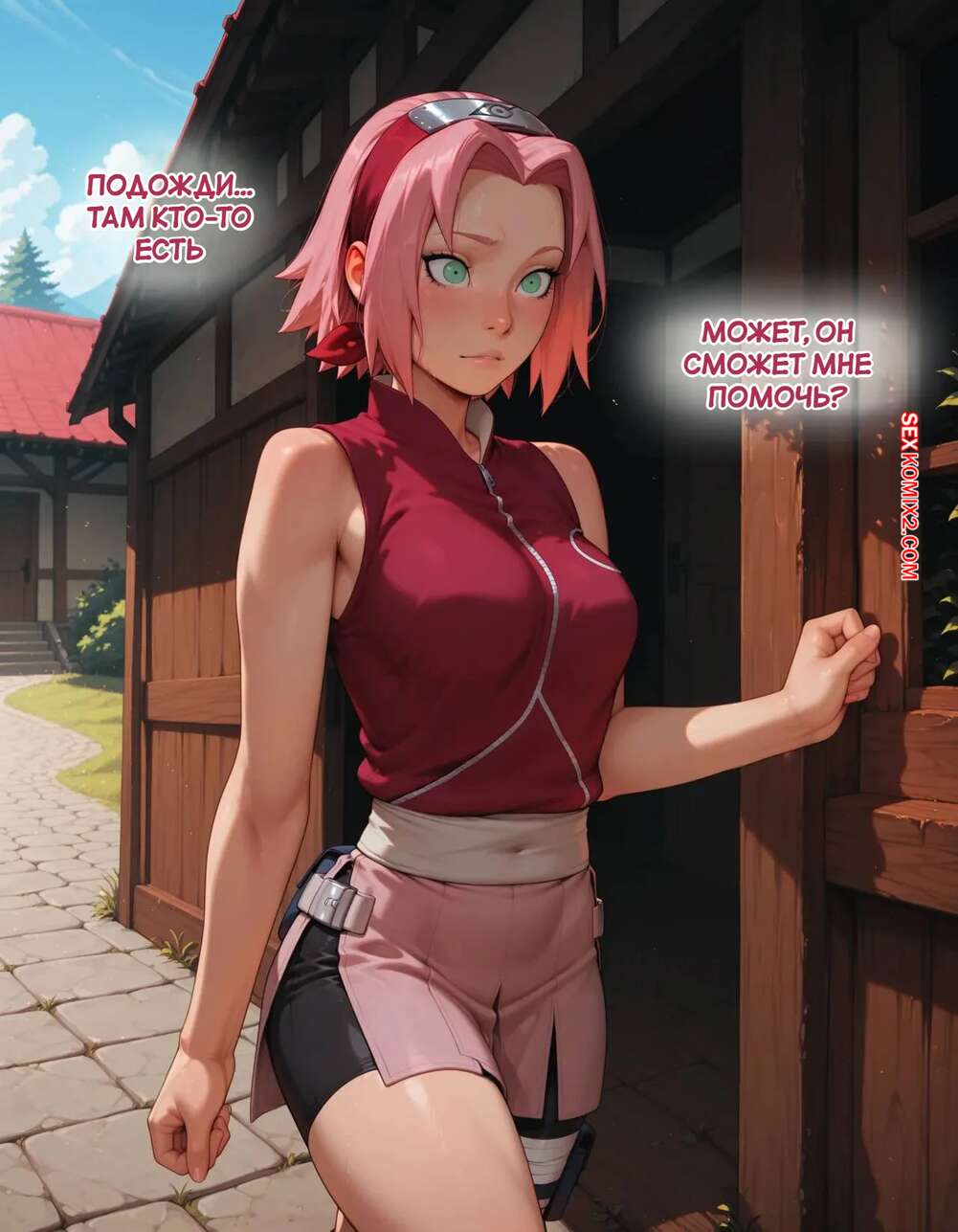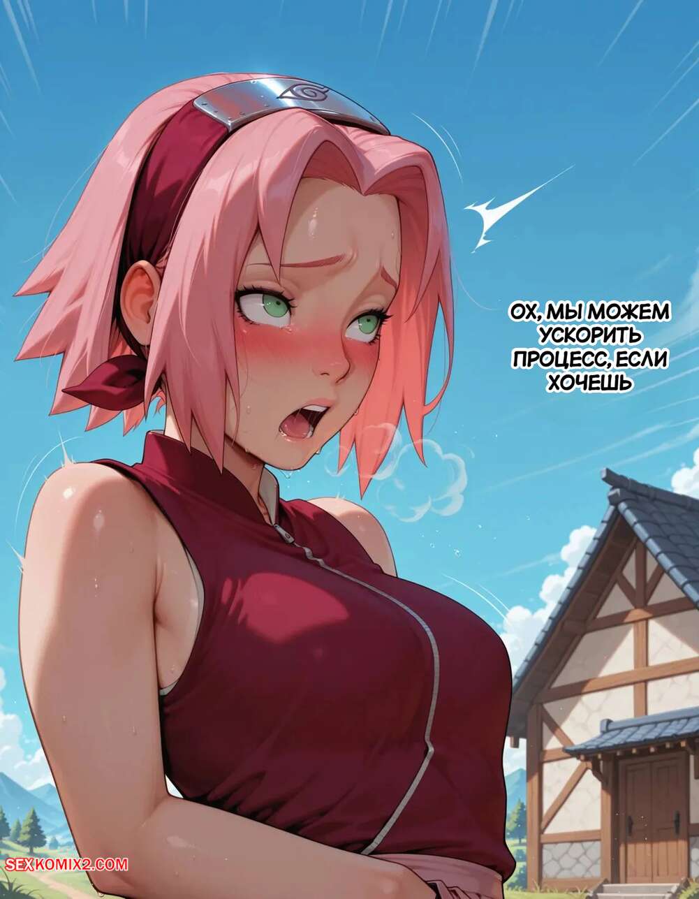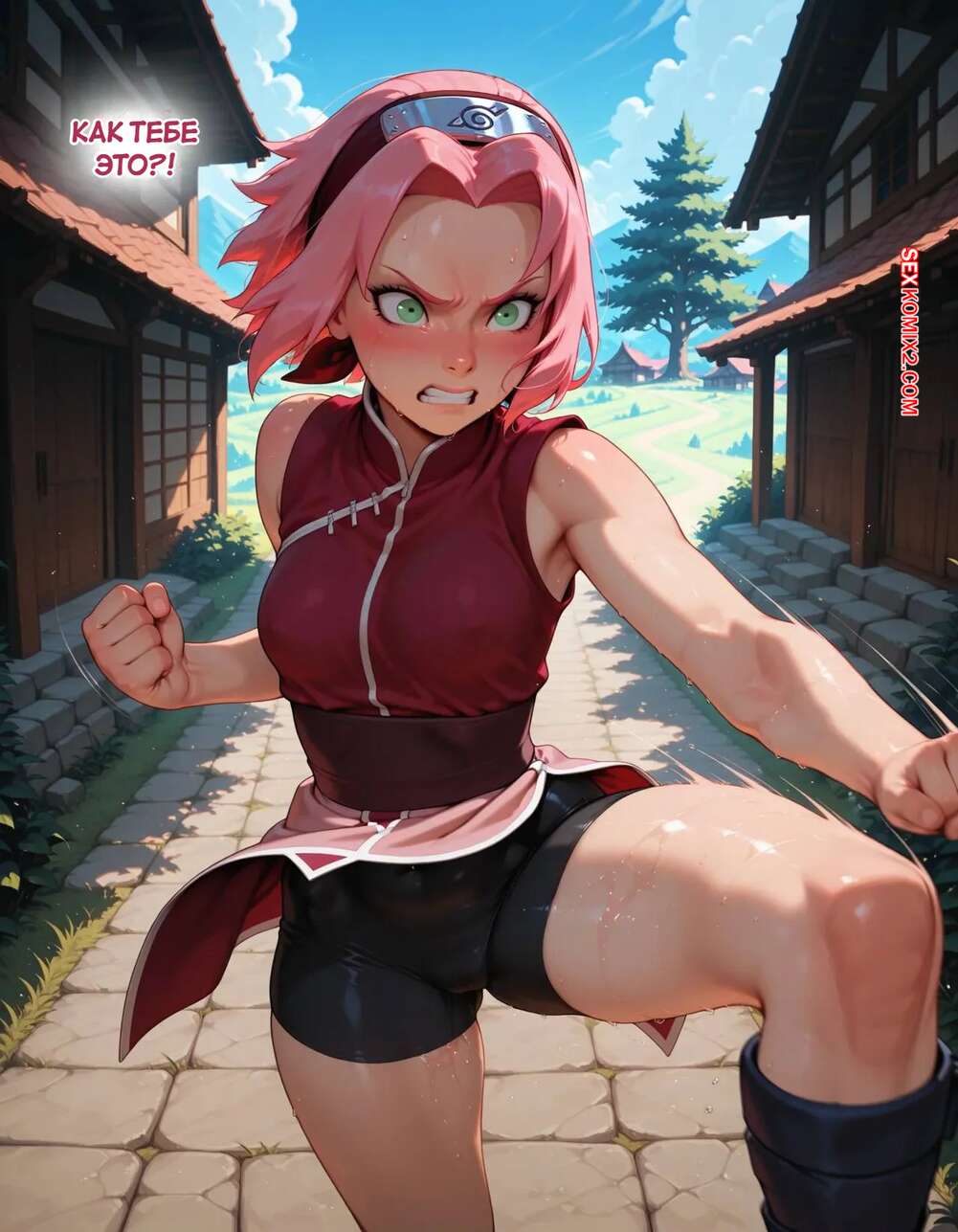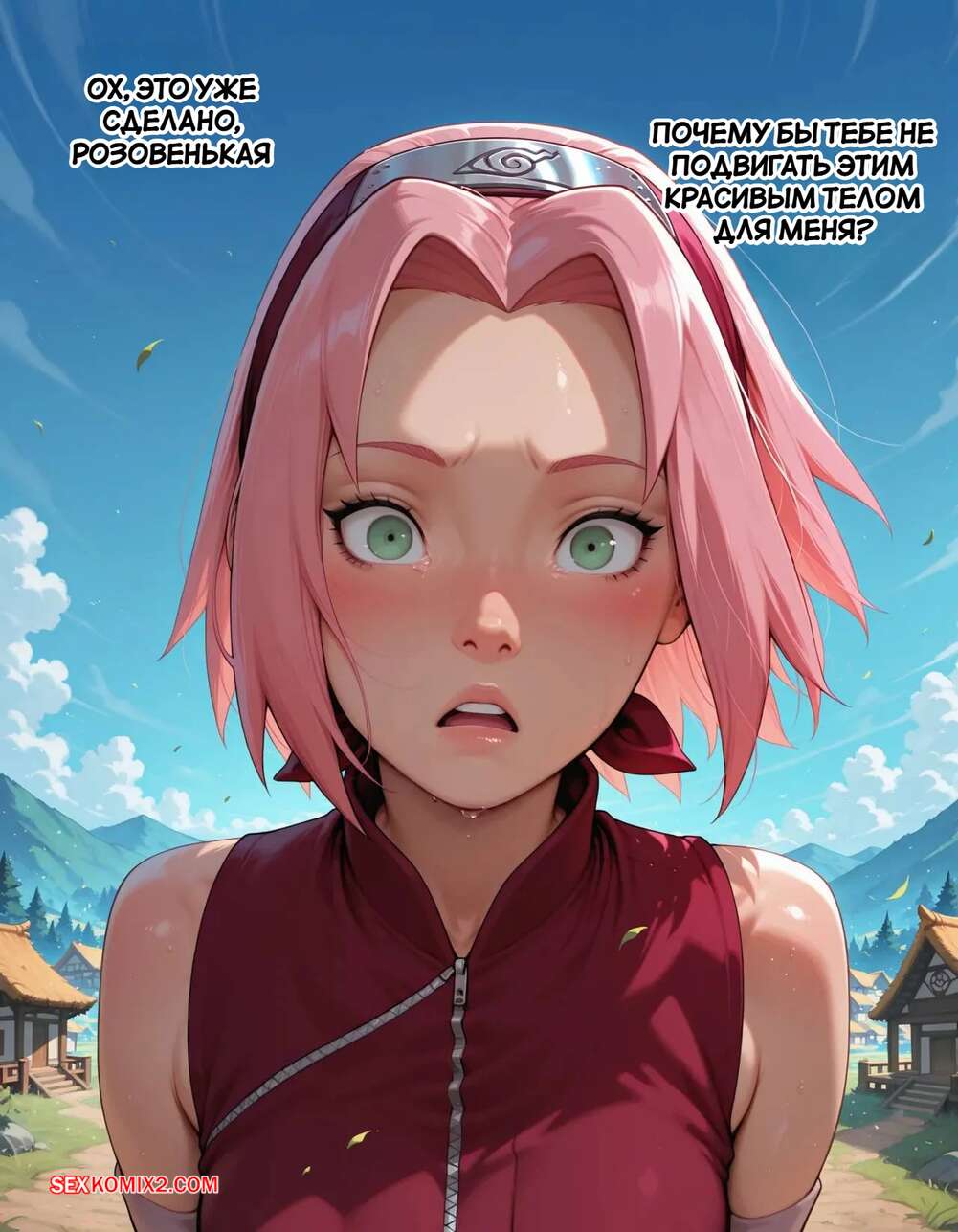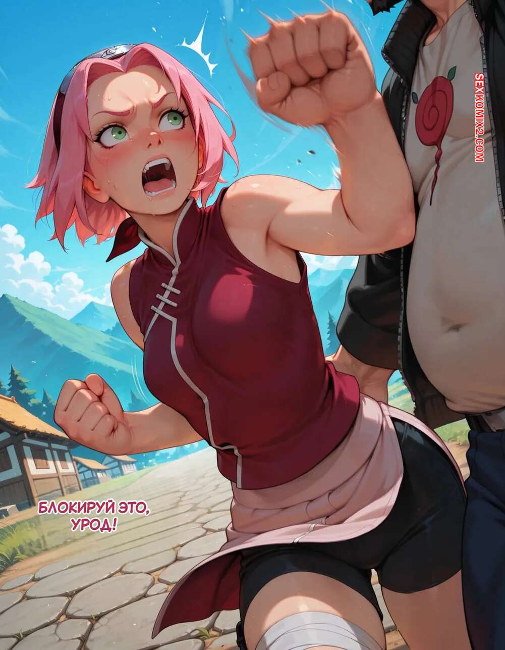 Порно комикс Наруто. Деревня Эрос. Часть 2. The Village of Eros. Sax Сакура отправилась в деревню Эрос, где она встретила на своем пути парня и вступила с ним в схватку. Он возбудил девушку и дал ей отсосать свой большой хуй, после чего как следует ее выебал.