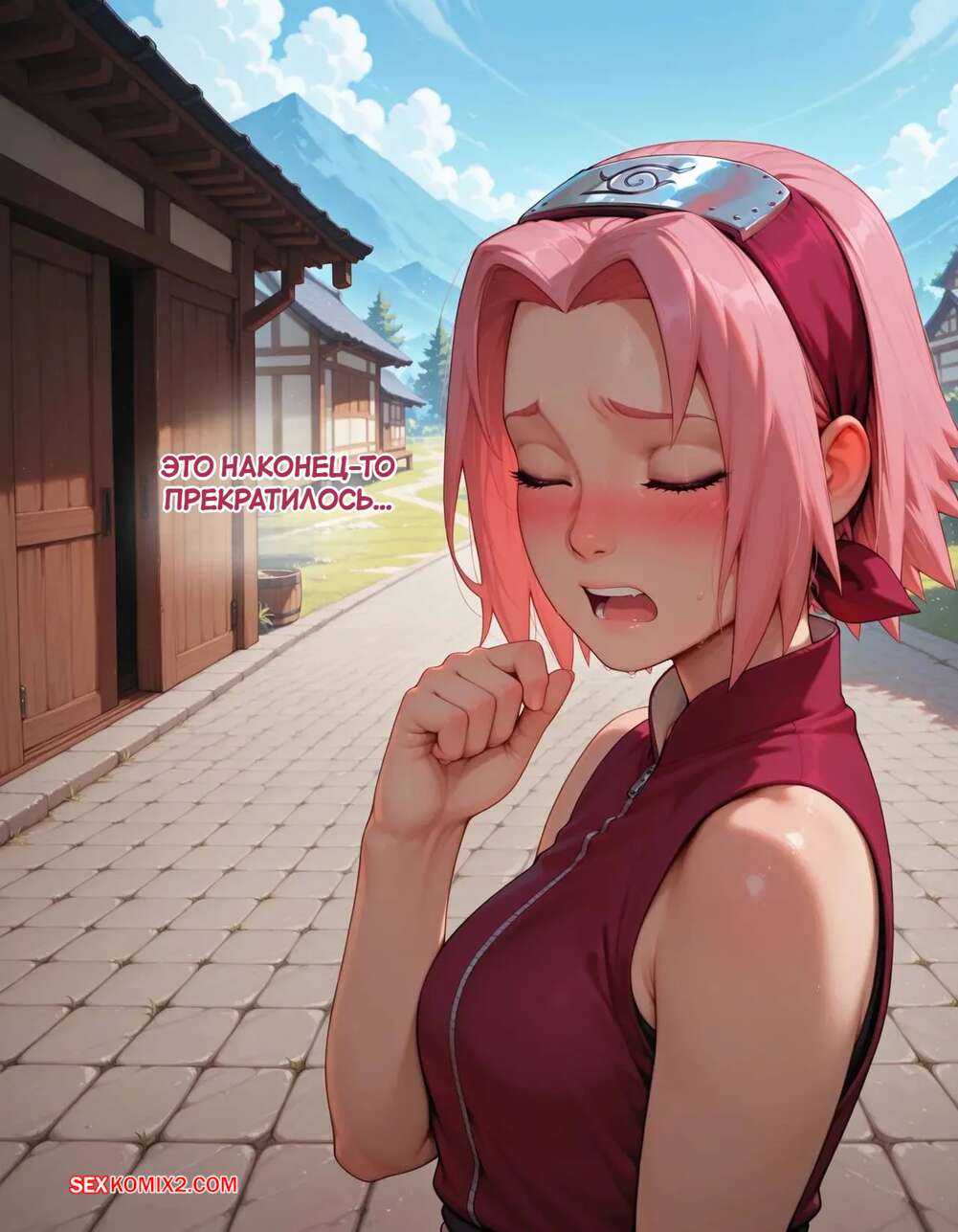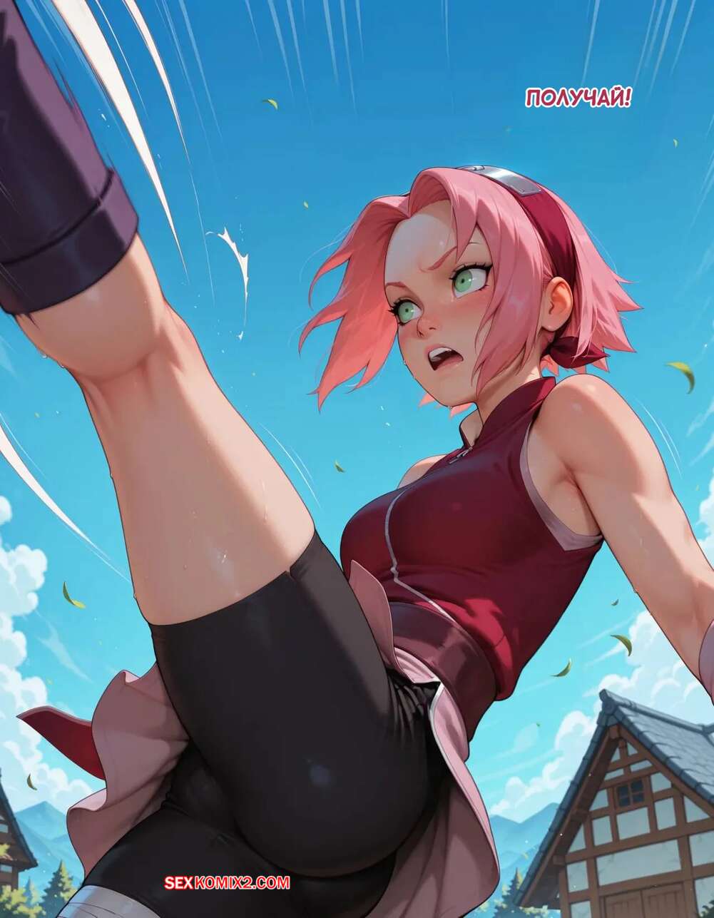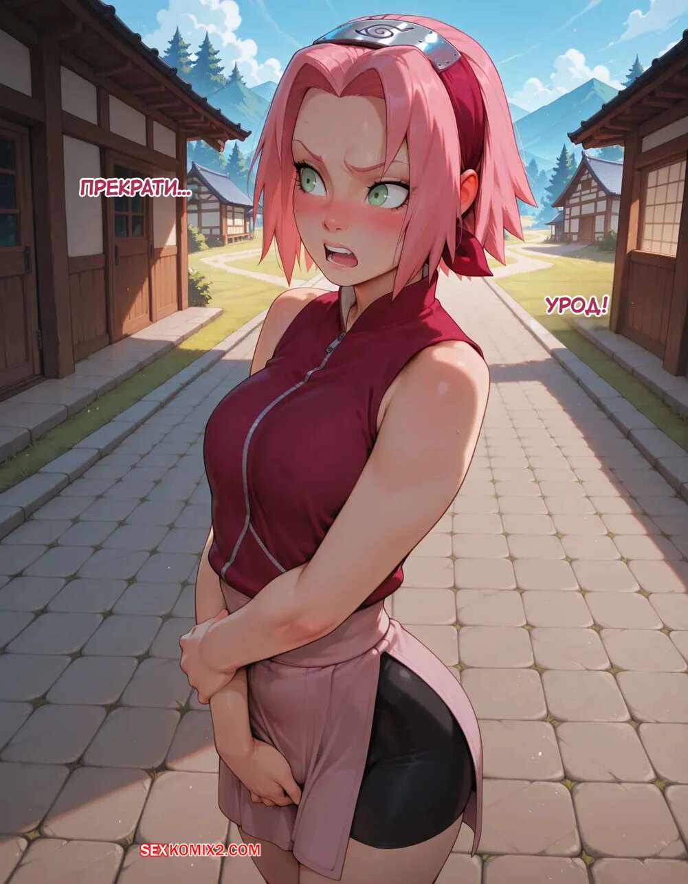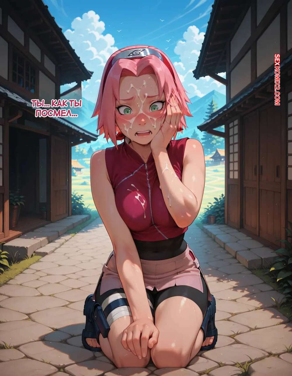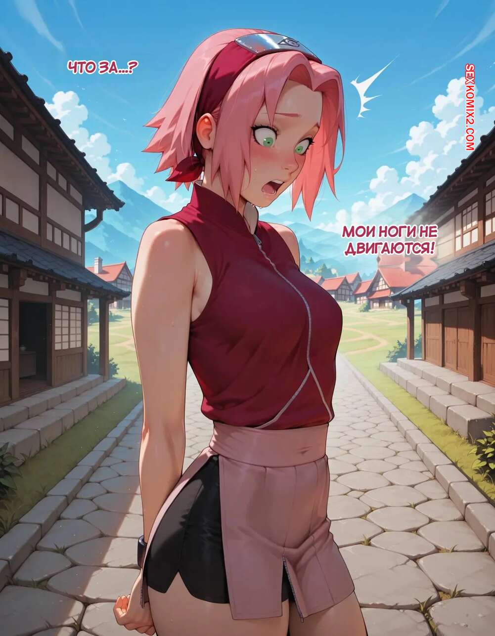 Порно комикс Наруто. Деревня Эрос. Часть 2. The Village of Eros. Sax Сакура отправилась в деревню Эрос, где она встретила на своем пути парня и вступила с ним в схватку. Он возбудил девушку и дал ей отсосать свой большой хуй, после чего как следует ее выебал.