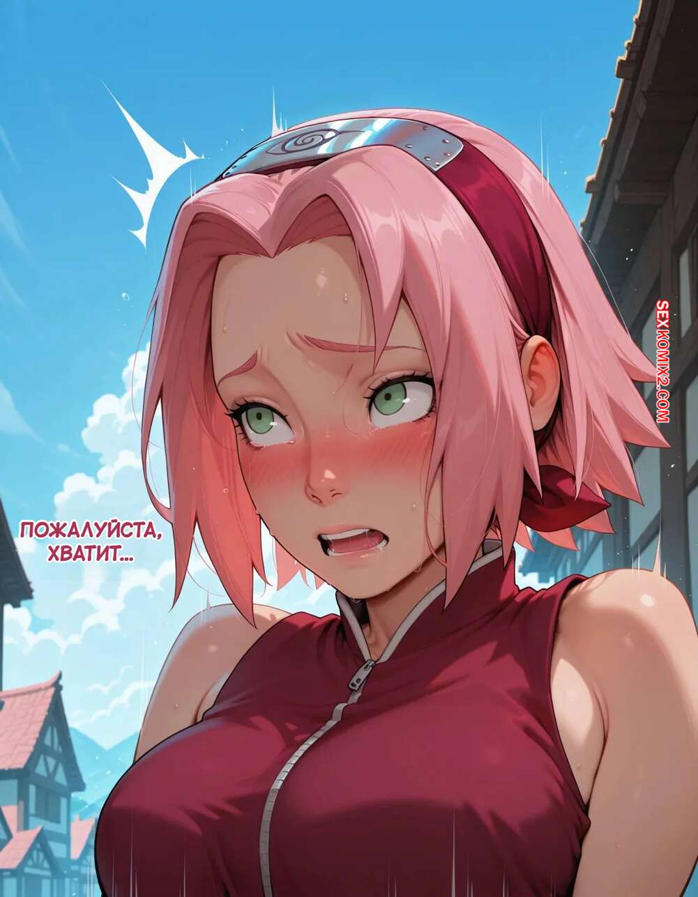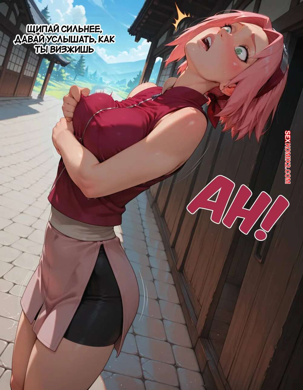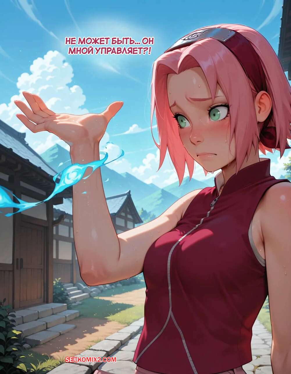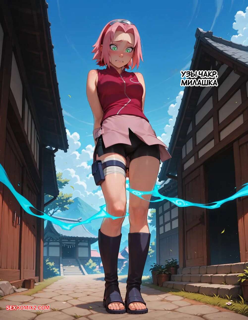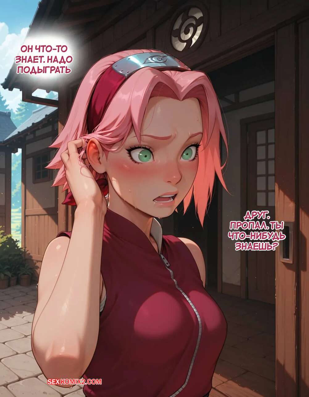Порно комикс Наруто. Деревня Эрос. Часть 2. The Village of Eros. Sax Сакура отправилась в деревню Эрос, где она встретила на своем пути парня и вступила с ним в схватку. Он возбудил девушку и дал ей отсосать свой большой хуй, после чего как следует ее выебал.