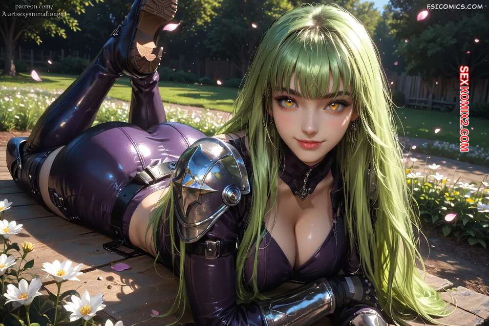 Порно комикс C C. AiASAG Зеленоволосая красотка в сексуальном наряде позирует перед парнем, демонстрируя свои аппетитные прелести. Девушка встала на колени и отсосала большой хуй парня, после чего он ее трахнул, доставив малышке удовольствие.