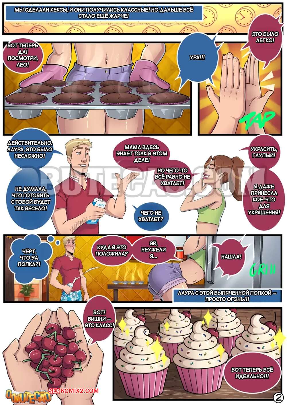 Порно комикс Готовим кексы с моей кузиной. Fazendo cupcakes com minha prima. O Butecao Парнишка пришел к своей кузины, чтобы вместе приготовить кексы для семейной вечеринки. После кулинарии девушка стала дразнить братика и играться с его членом, после чего дала себя как следует трахнуть.