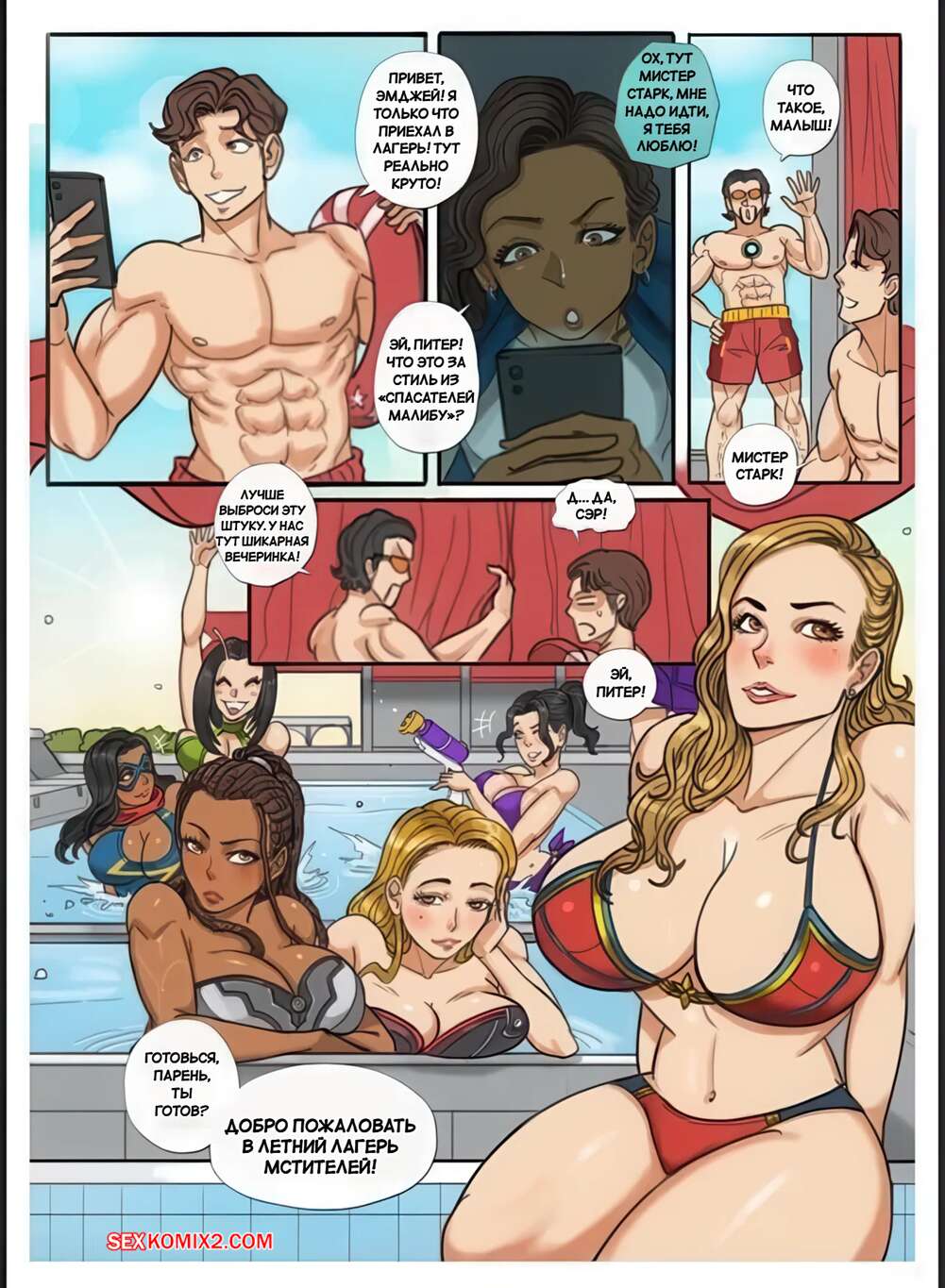 Порно комикс Marvel. Летний лагерь мстителей. Черная вдова. Avengers Summer Camp. toratora. Питер Паркер приехал в летний лагерь Мстителей. Он услышал странные звуки, и понял, что за соседней стеной Тони трахает Наташу. У Паучка сразу встал хуй, за чем его спалила Елена Белова и дала себя трахнуть.