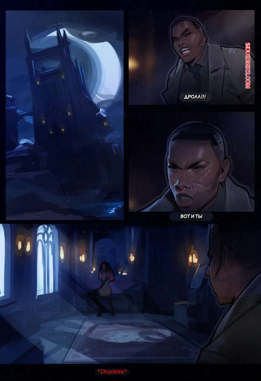 Порно комикс Castlevania Nocturne. Дрольта. Drolta. MagicMoon Arts. Темнокожий парень оказался в замке сексуальной вампирши, приготовив для нее особое оружие. Он вытащил из штанов огромный железный член и насадил красотку на него, чтобы ее выебать и оставить без сил.