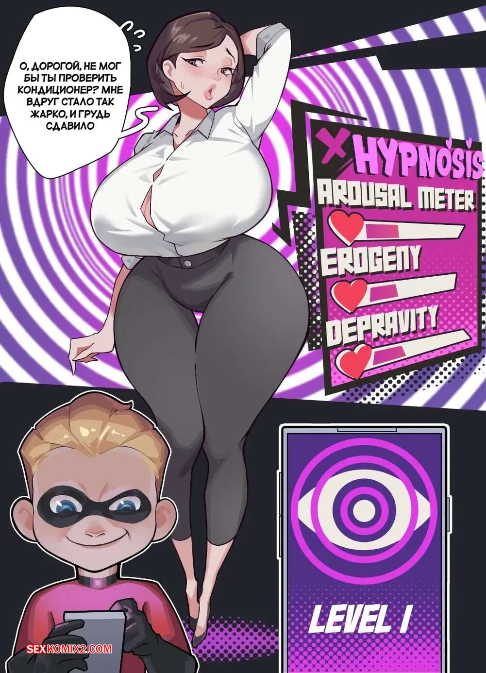 Порно комикс Суперсемейка. Милф трах. Хелен и Дэн. Milf Truck. Helen and Dash. MoomooDairy. Горячая красотка Эластика надела сексуальный наряд и пришла к Шастику, чтобы его соблазнить. Парень вывалил огромный член перед мамкой и она с удовольствием его отсосала, после чего дала себя выебать в пизду и задницу.