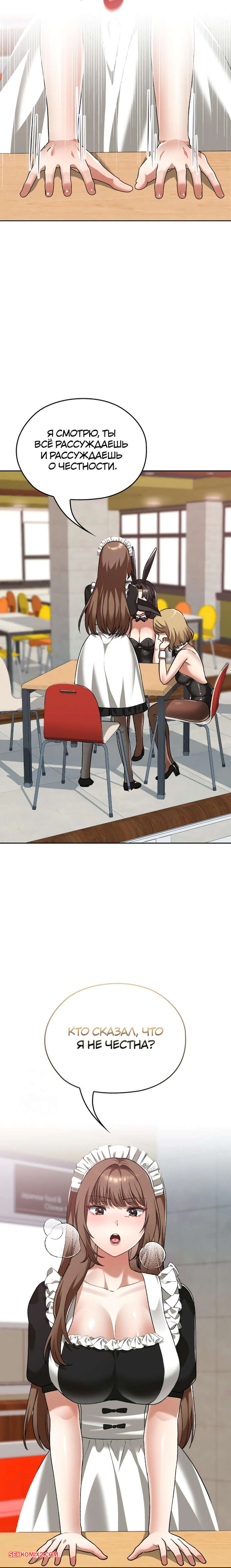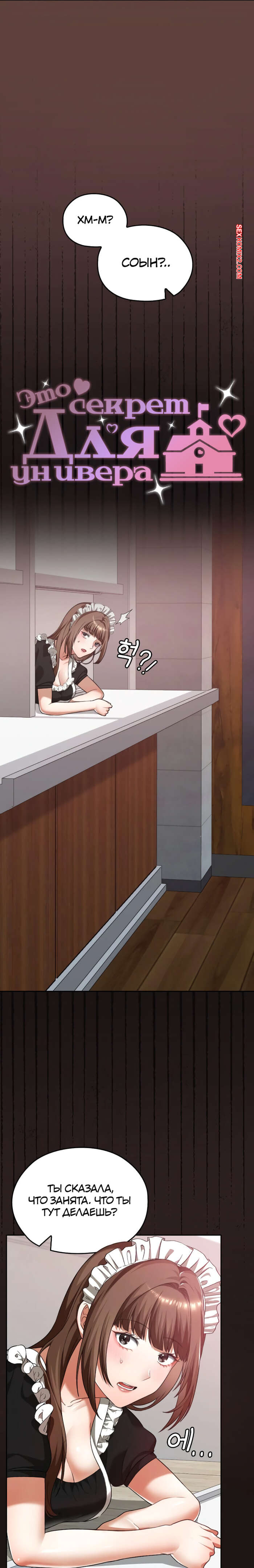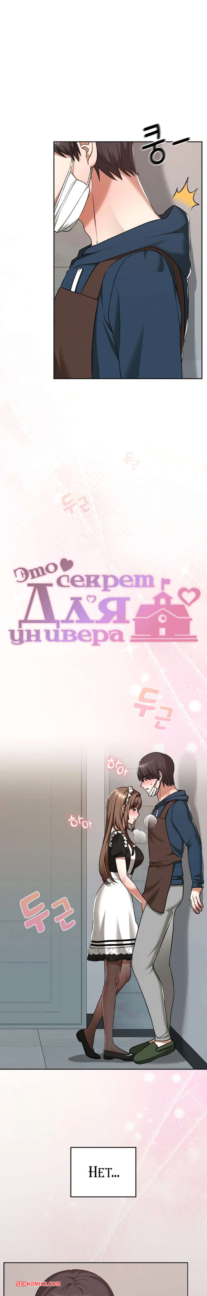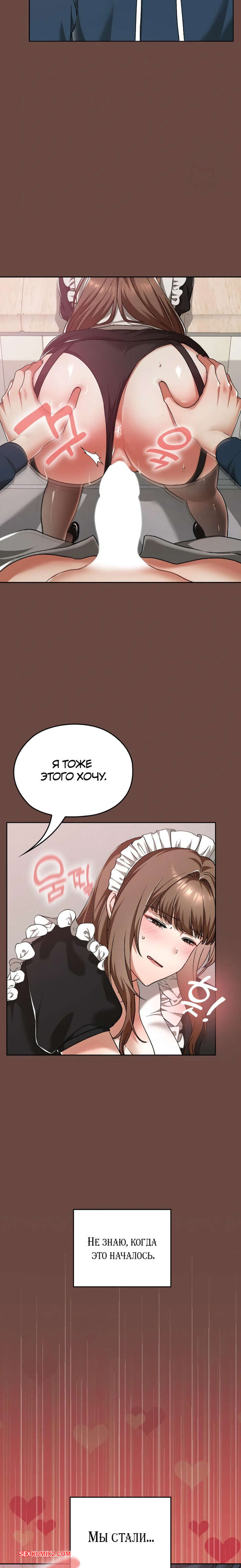 Порно комикс Только в универе никому не говори. Часть 35 и 36 и 37 и 38. hakkkyoeson bimiriya Горячая брюнетка надела костюм горничной, желая порадовать своего дружка. Они стали страстно целоваться, после чего парень поставил девушку раком и вставил в нее свой член.