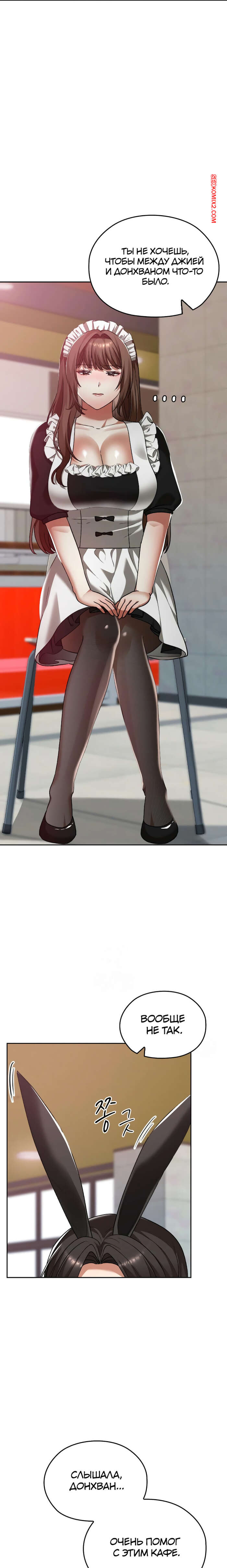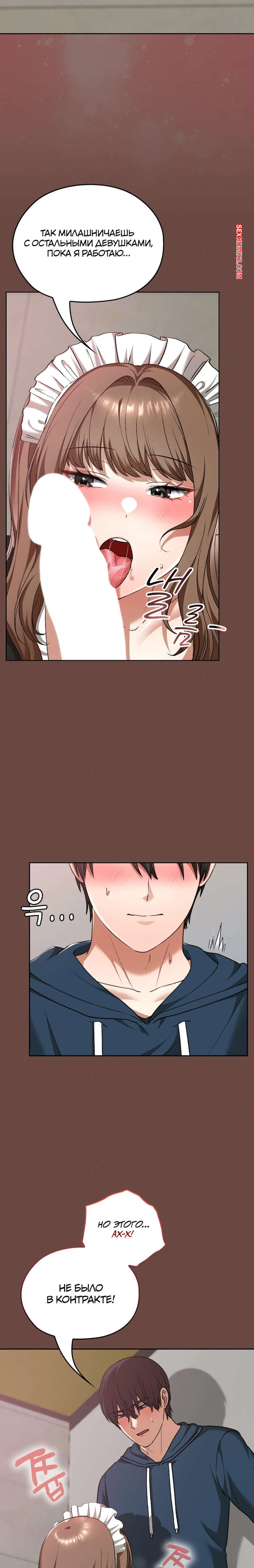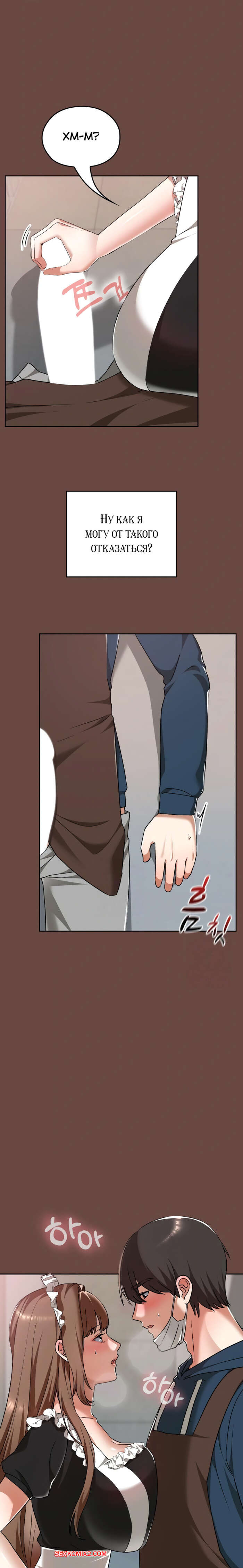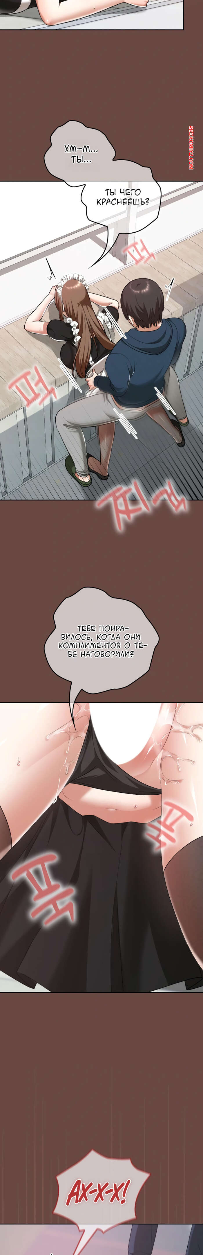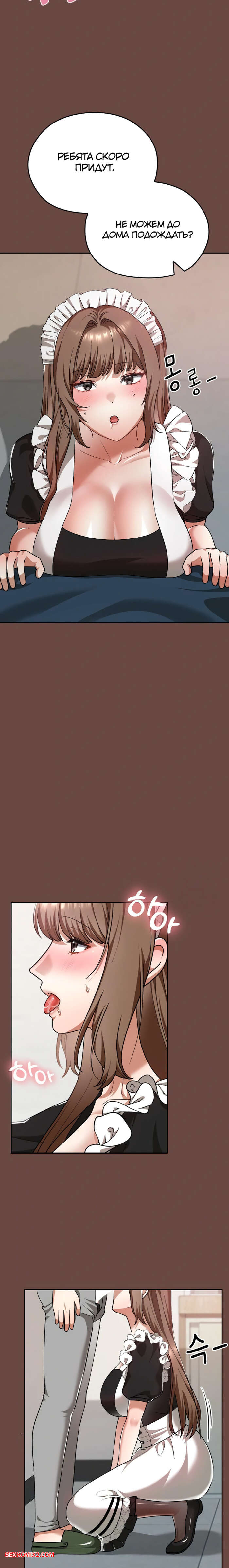 Порно комикс Только в универе никому не говори. Часть 35 и 36 и 37 и 38. hakkkyoeson bimiriya Горячая брюнетка надела костюм горничной, желая порадовать своего дружка. Они стали страстно целоваться, после чего парень поставил девушку раком и вставил в нее свой член.