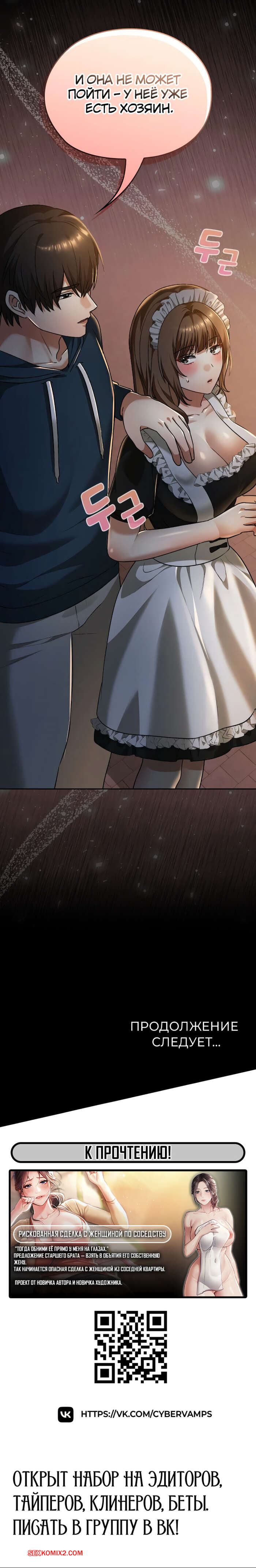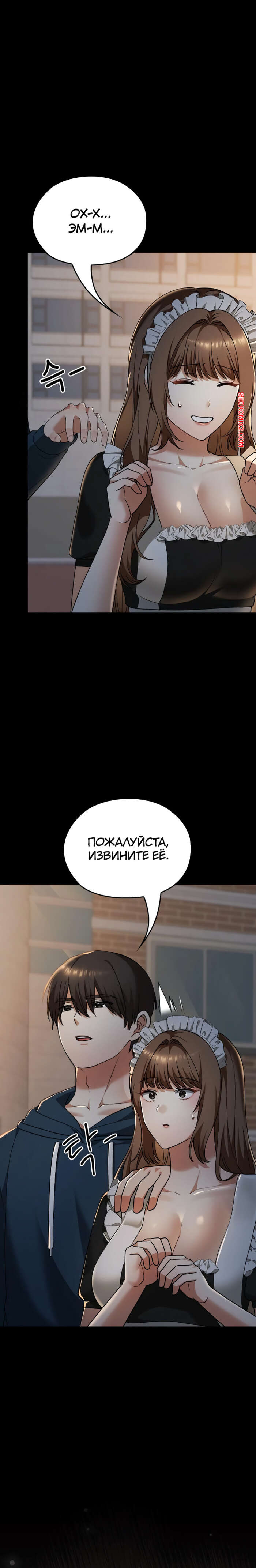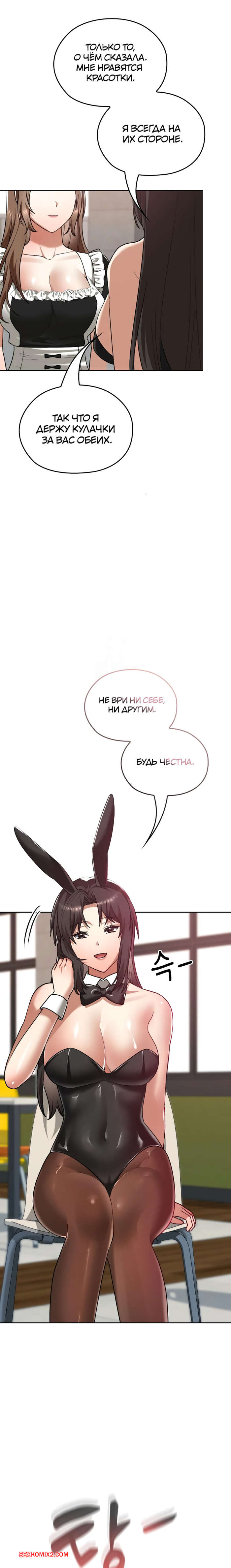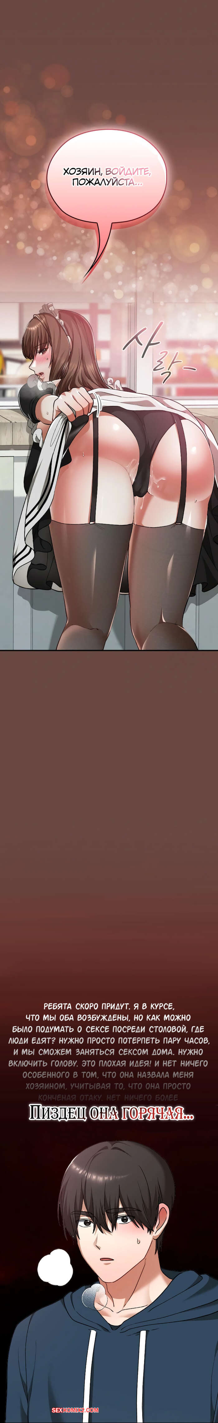 Порно комикс Только в универе никому не говори. Часть 35 и 36 и 37 и 38. hakkkyoeson bimiriya Горячая брюнетка надела костюм горничной, желая порадовать своего дружка. Они стали страстно целоваться, после чего парень поставил девушку раком и вставил в нее свой член.