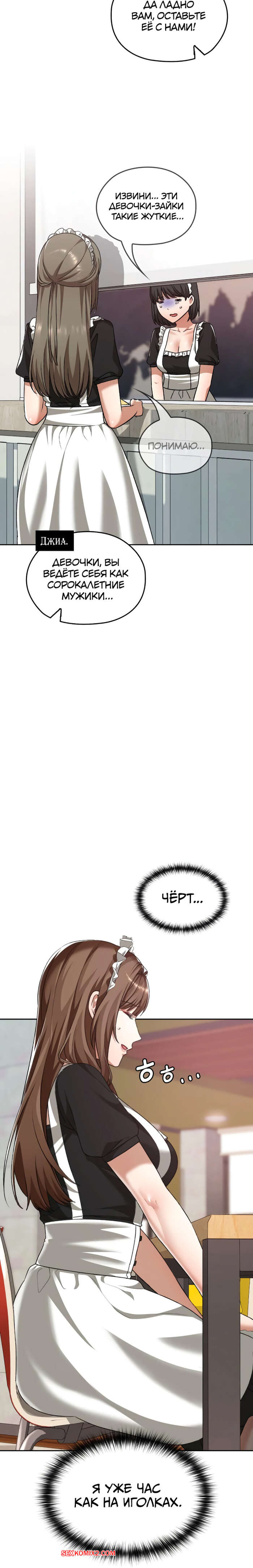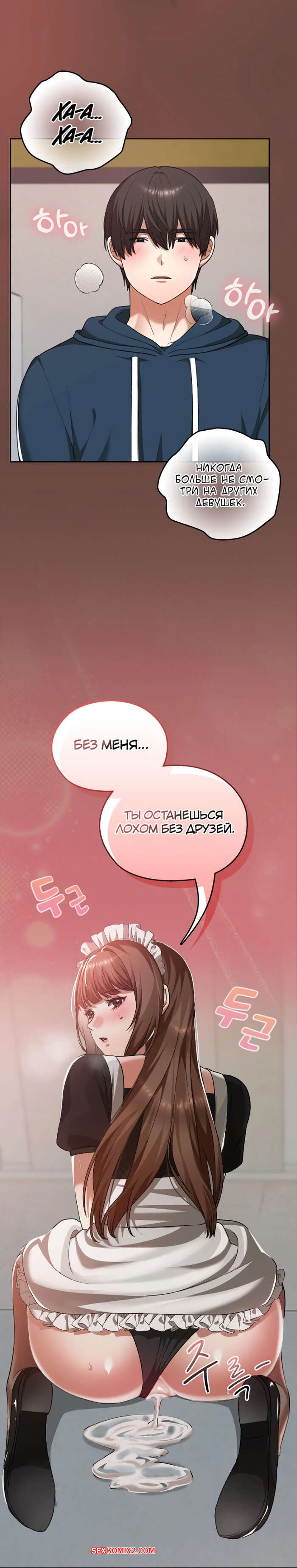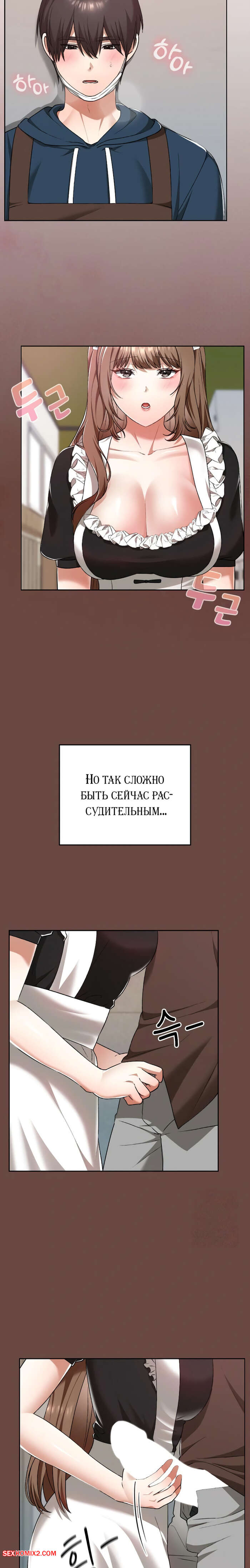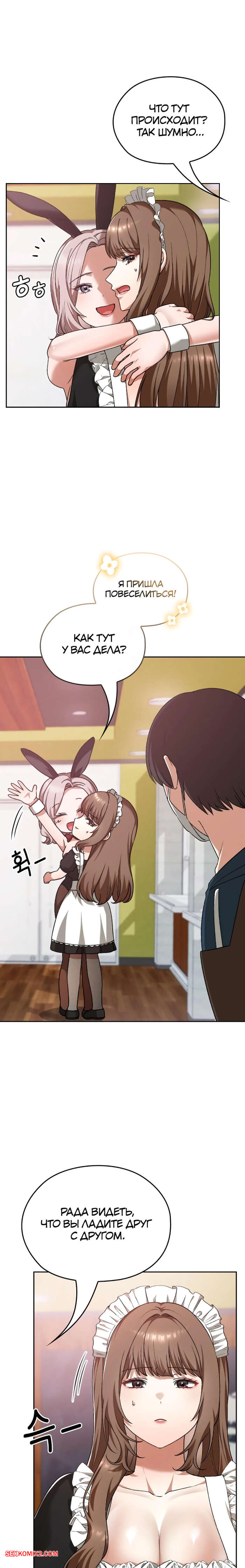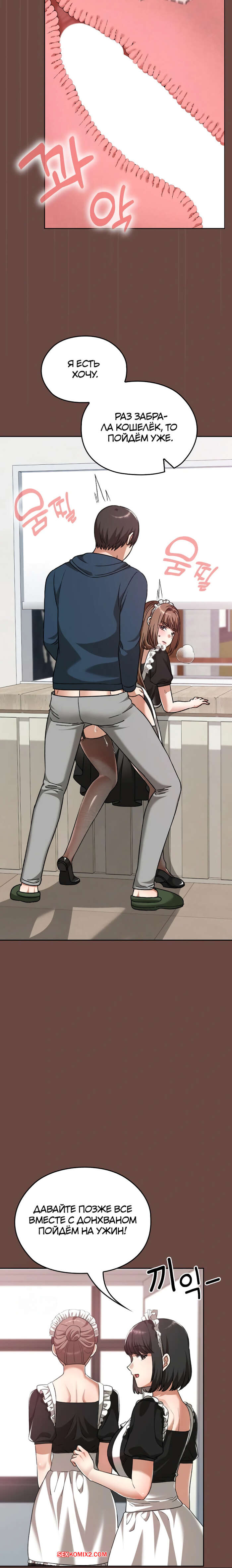 Порно комикс Только в универе никому не говори. Часть 35 и 36 и 37 и 38. hakkkyoeson bimiriya Горячая брюнетка надела костюм горничной, желая порадовать своего дружка. Они стали страстно целоваться, после чего парень поставил девушку раком и вставил в нее свой член.