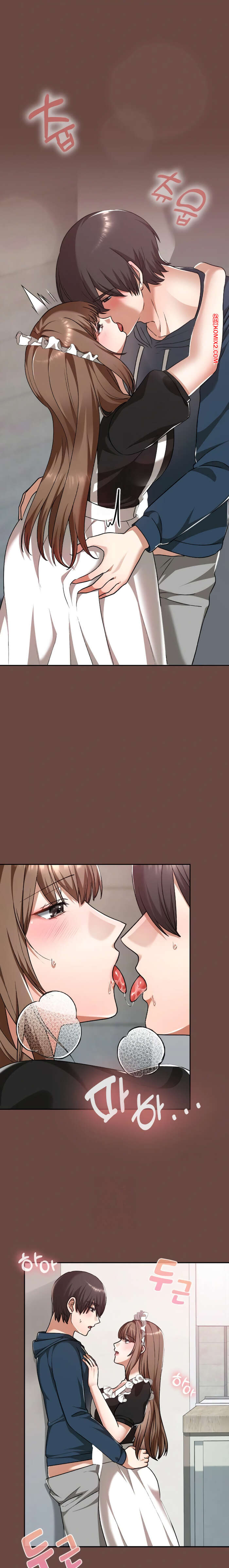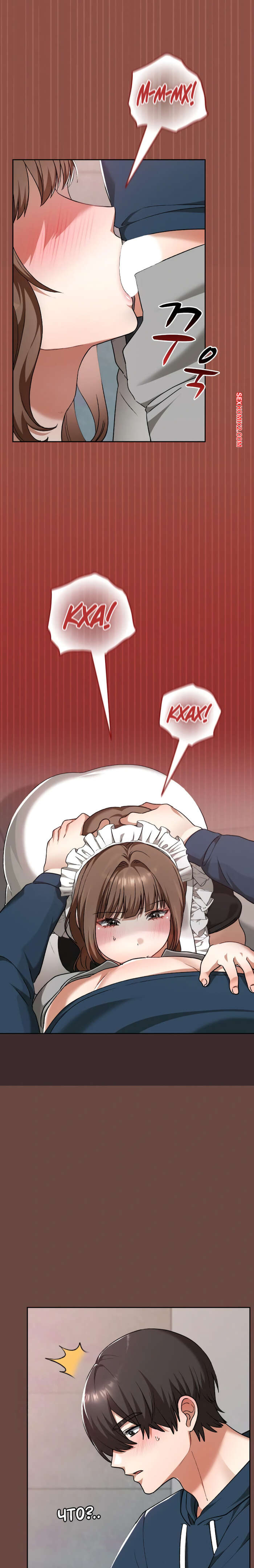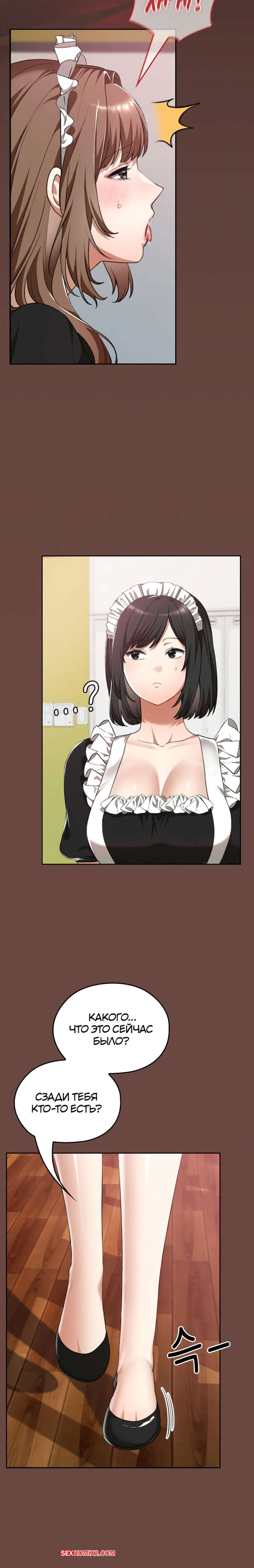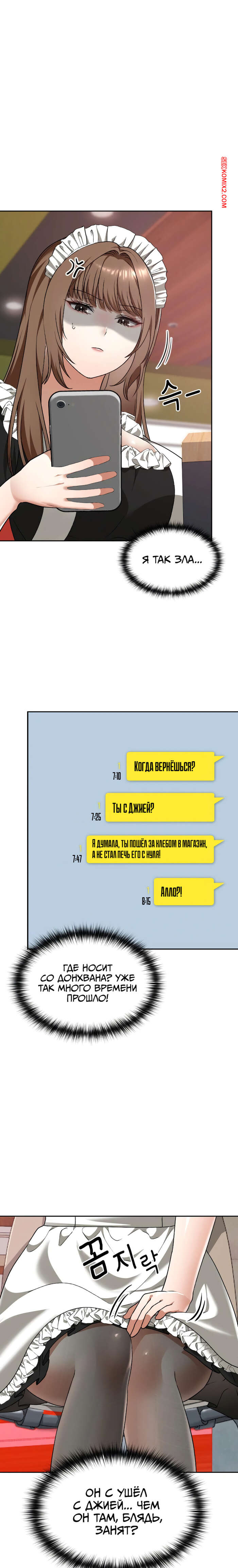 Порно комикс Только в универе никому не говори. Часть 35 и 36 и 37 и 38. hakkkyoeson bimiriya Горячая брюнетка надела костюм горничной, желая порадовать своего дружка. Они стали страстно целоваться, после чего парень поставил девушку раком и вставил в нее свой член.
