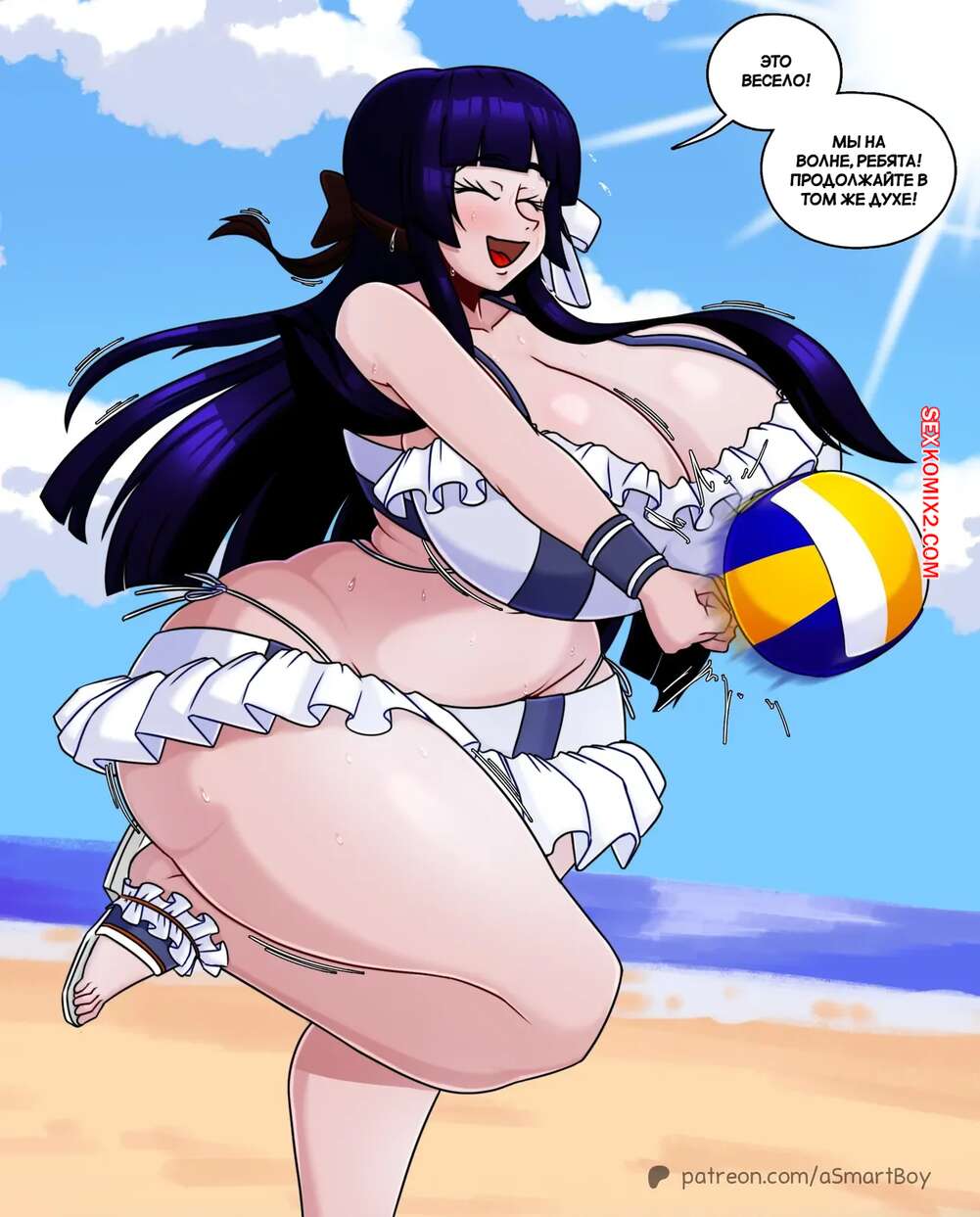 Порно комикс Косплей девушка. Лето. Cosplay Girl. Summer Time. ASmartBoy. Горячая брюнетка пришла на пляж в откровенном купальнике и сразу привлекла внимание нескольких парней. Они по очереди ласкают девушку и возбуждают ее, после чего хорошенько ее трахают.