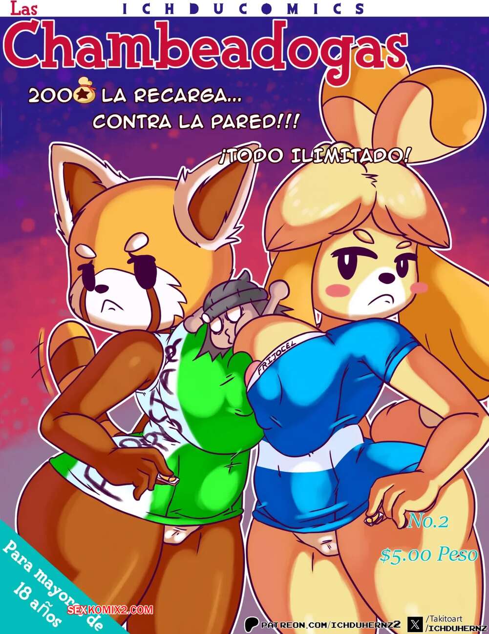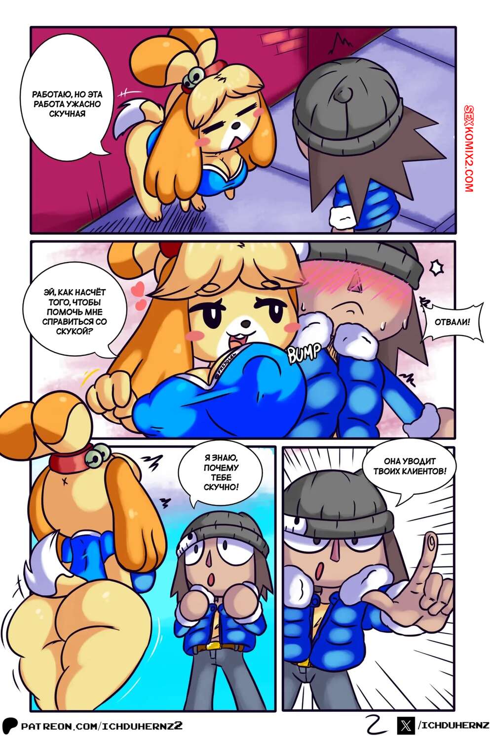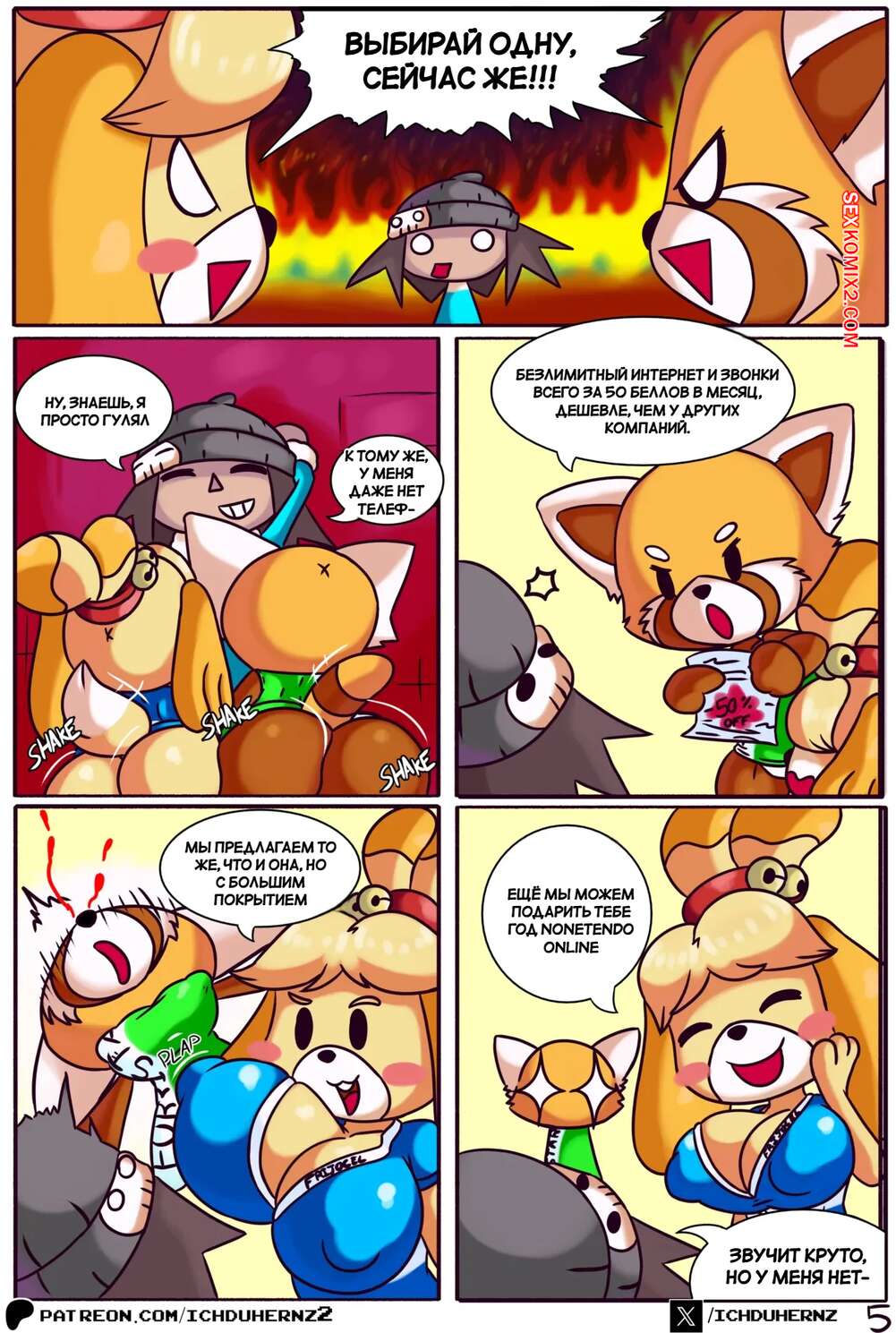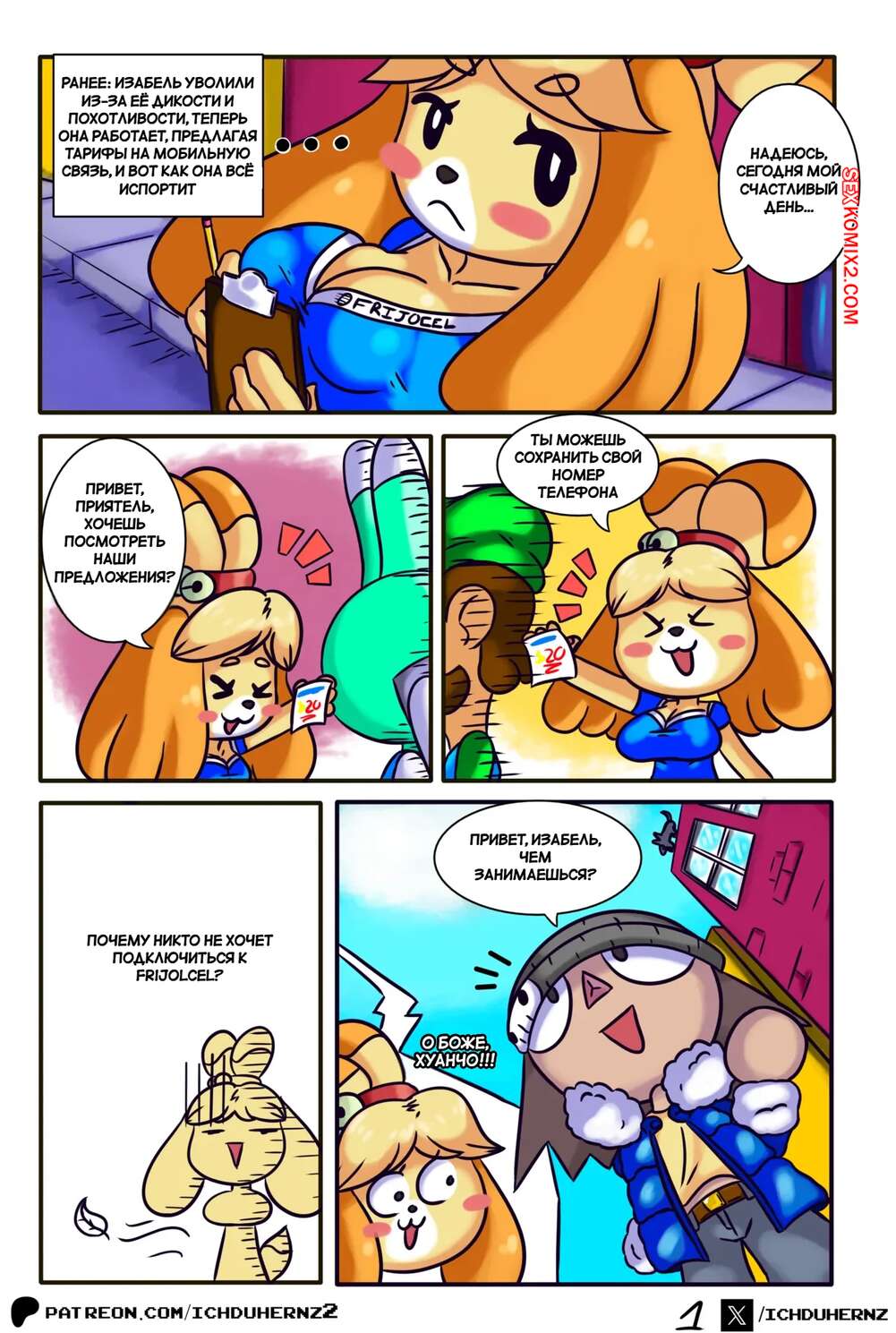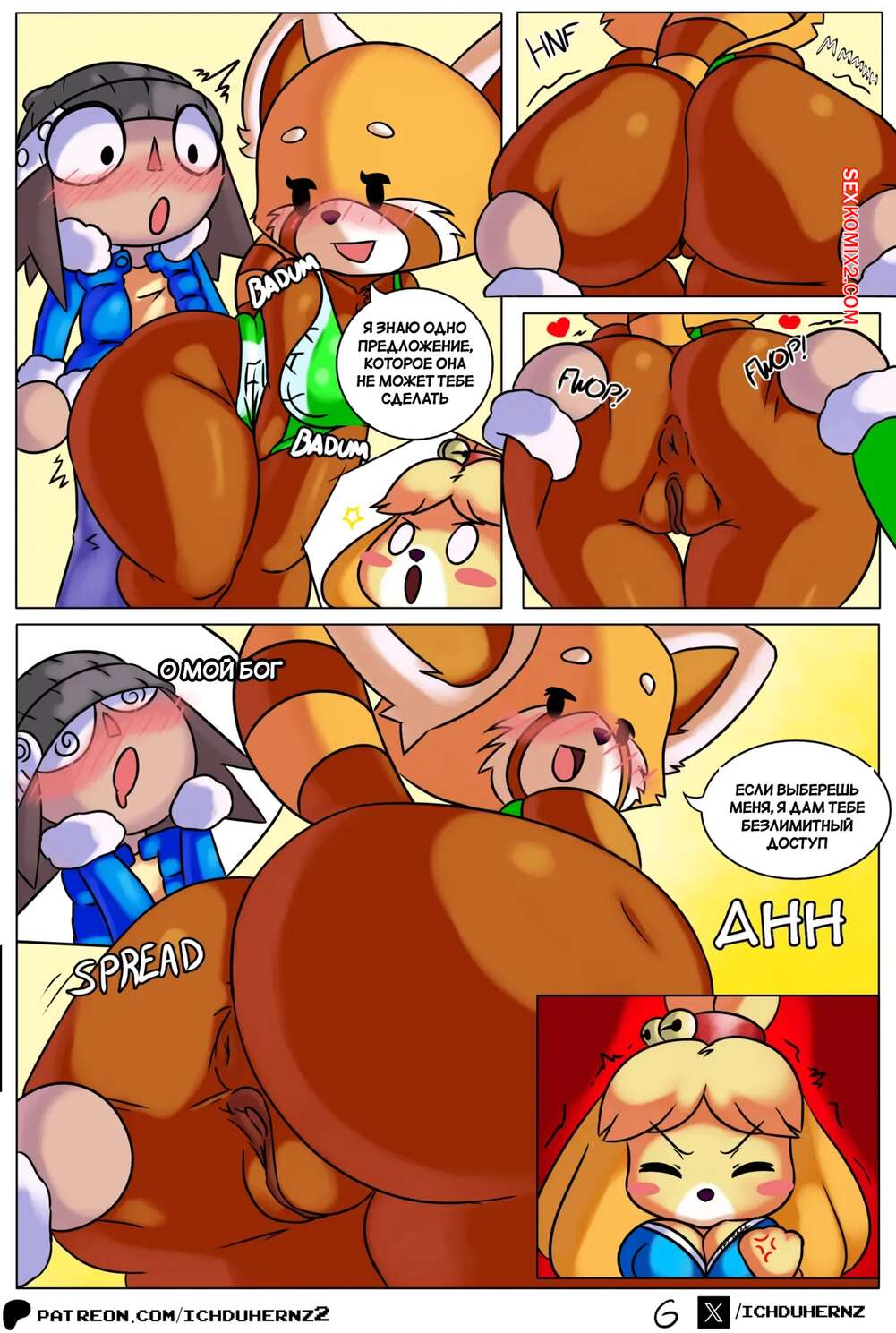 Порно комикс Animal Crossing. Лас Чамбеадогас. Часть 2. Las Chambeadogas. Ichduhernz Две девушки фурри возбуждены и хотят секса. Они раздеваются перед парнем и сосут его член, стоя на коленях, после чего седлают его и дают себя как следует выебать.