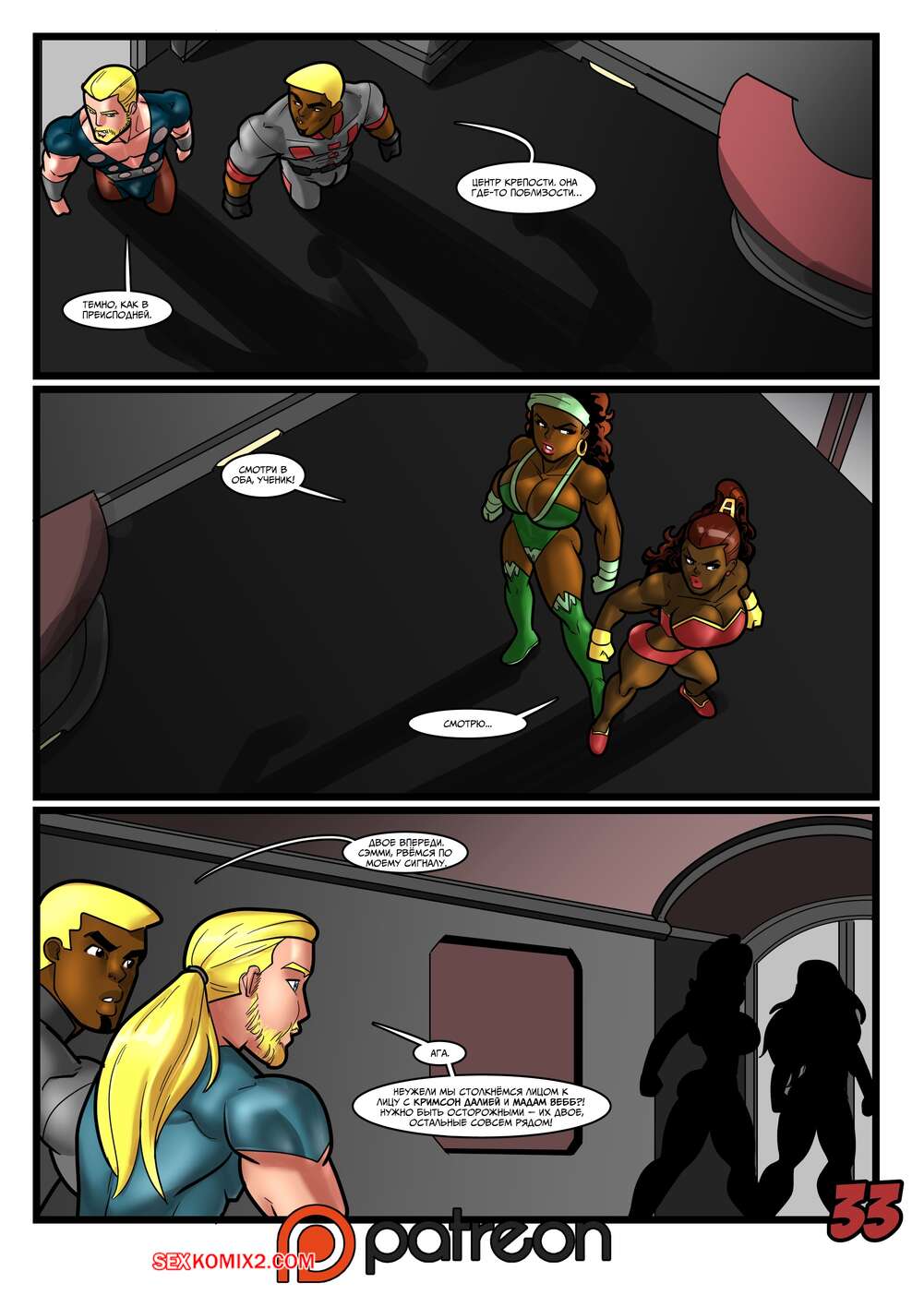 Порно комикс Геройские Истории. Поцелуй Кримсон Далии. Rabies T Lagomorph Горячие красотки не могут устоять перед большим членом своего темнокожего дружка. Они раздеваются и хорошенько у него отсасывают, после чего раздвигают ножки и дают себя хорошенько выебать.