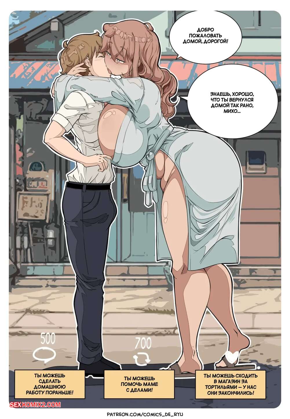 Порно комикс Интерактивная игра в твиттере. Interactive Twitter Game. Comicom Ryu. Парнишка вернулся домой со школы и его встретила сексуальная мамочка в одном лишь халате на голое тело. Она предложила сыну пошалить и стала отсасывать его член, после чего дала выебать свою пизденку.