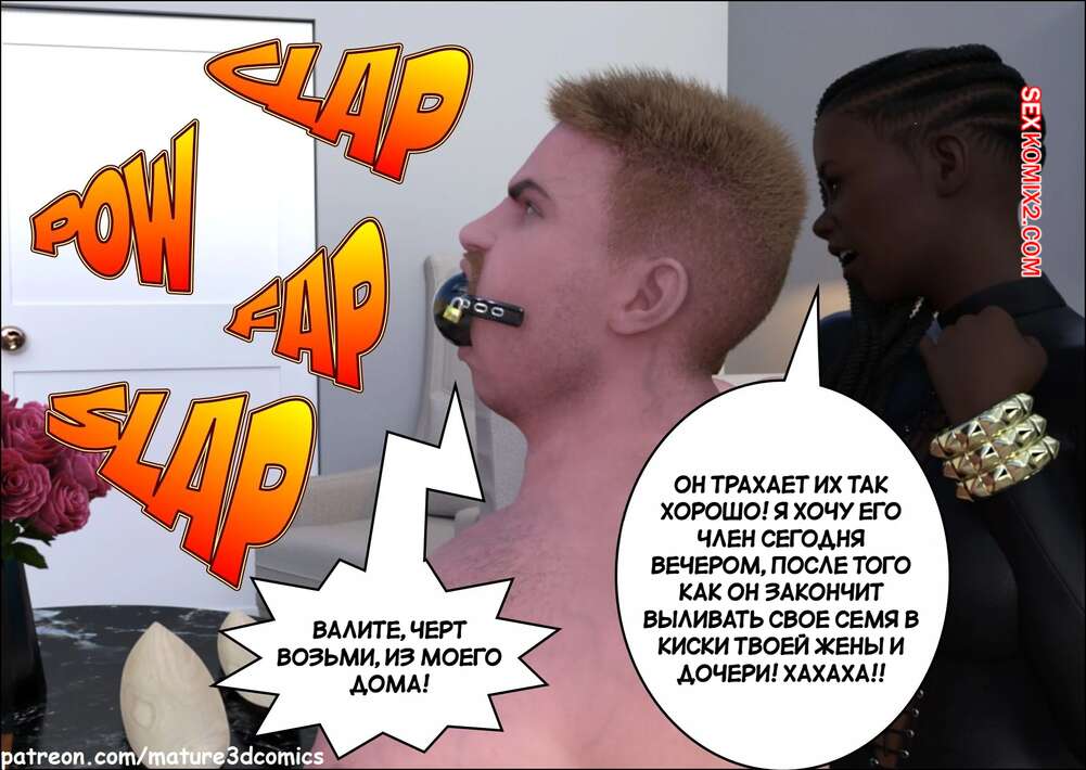 Порно комикс Семейный переход власти. Family Takeover. Mature3DComics. В дом к семье ворвалась темнокожая пара, чтобы воспользоваться девушками. Темнокожий парень отправился в спальню с мамой и дочкой, где их хорошенько выебал.