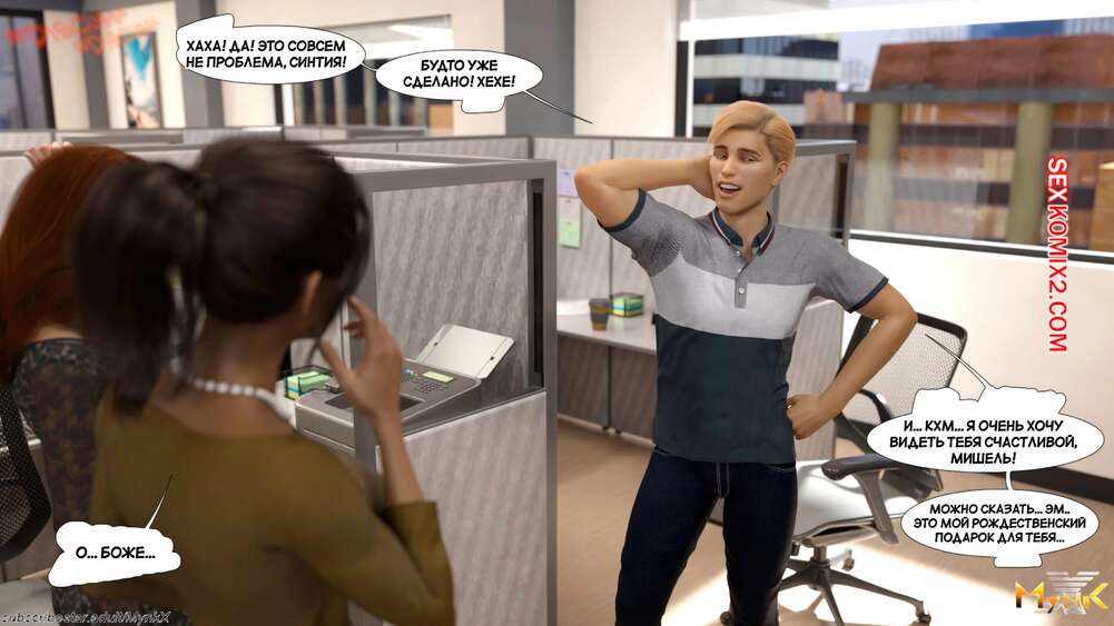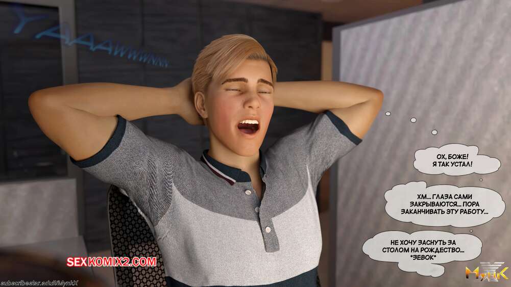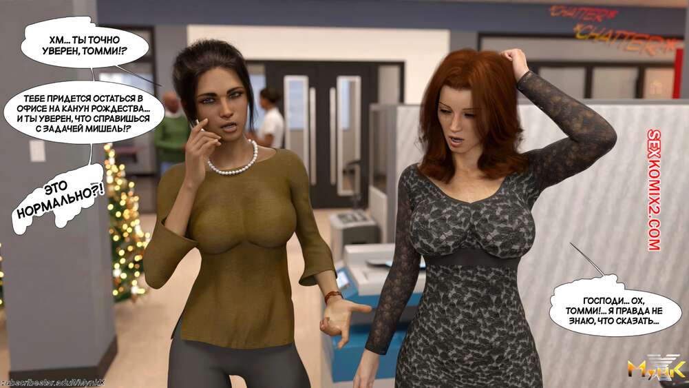 Порно комикс Развратное рождество. A Naughty Christmas. Mynkx. Горячая милфа надела сексуальный наряд, чтобы устроить парню незабываемое рождество. Сучка встала на колени и глубоко отсосала хуец парня, после чего дала ему выебать свою пизденку.