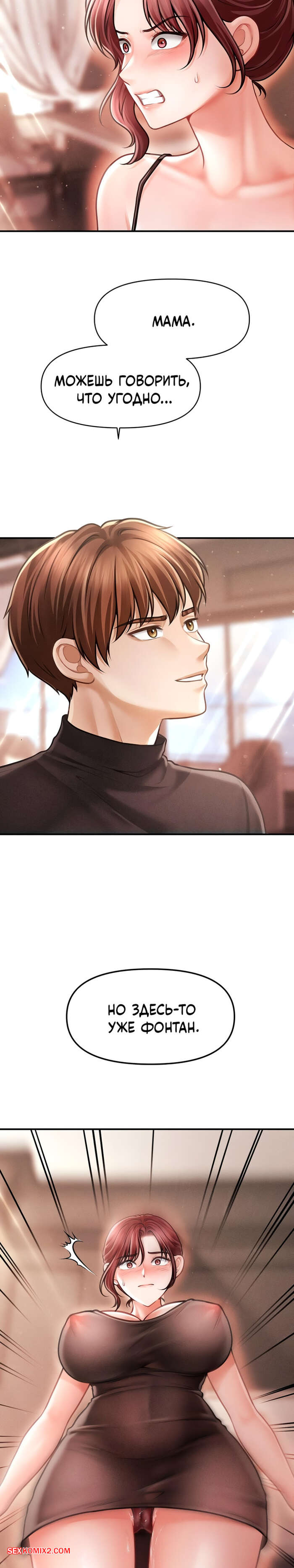 Порно комикс Тайный сын председателя. Часть 16 и 17 и 18. The chairmans secret son Молодой парень остался наедине с горячей милфой и решил повеселиться. Он достал член и дал красотке у себя отсосать, после чего она оседлала его и дала себя выебать.
