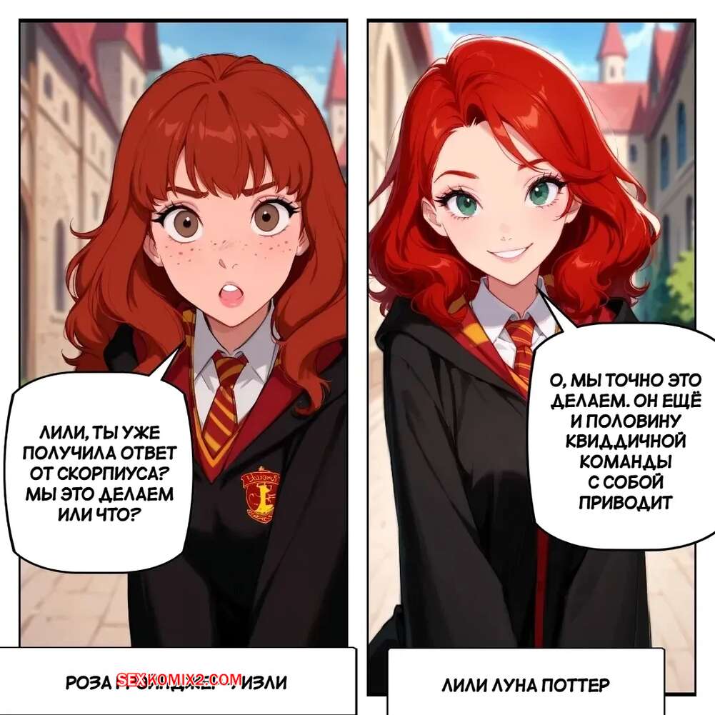 Порно комикс Гарри Поттер. Роуз Грейнджер Уизли и Лили Луна Поттер Две красотки приехали в Хогвартс и сразу стали там шлюшками. Они раздеваются перед нескольими парнями и отсасывают у них, после чего раздвигают ножки и дают выебать себя во все дырочки.