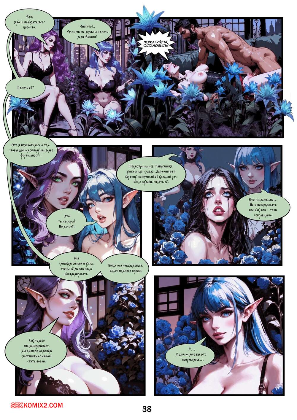 Порно комикс Оплодотворитель Фей. Часть 2. Fey Breeder Comix. Queen Potato Аппетитные эльфийки возбуждены и жаждут секса. Они соблазняют парней вокруг своими аппетитными формами и ласкают их члены, вызывая у парней каменные стояки, после чего дают им себя хорошенько выебать.