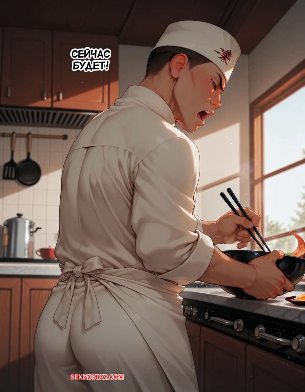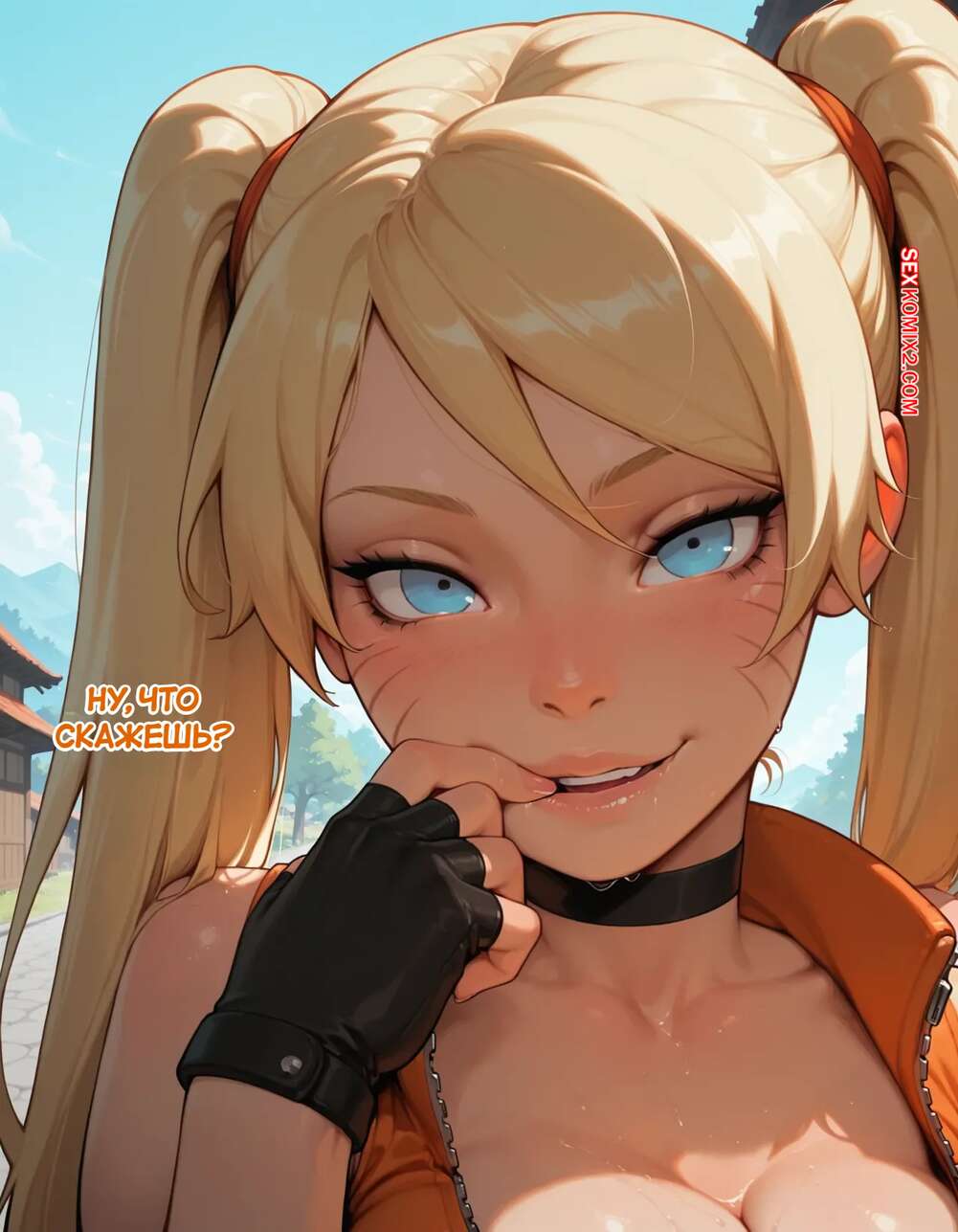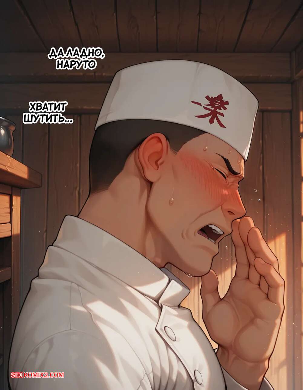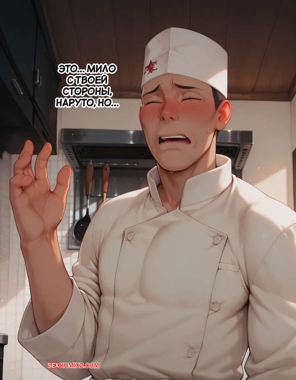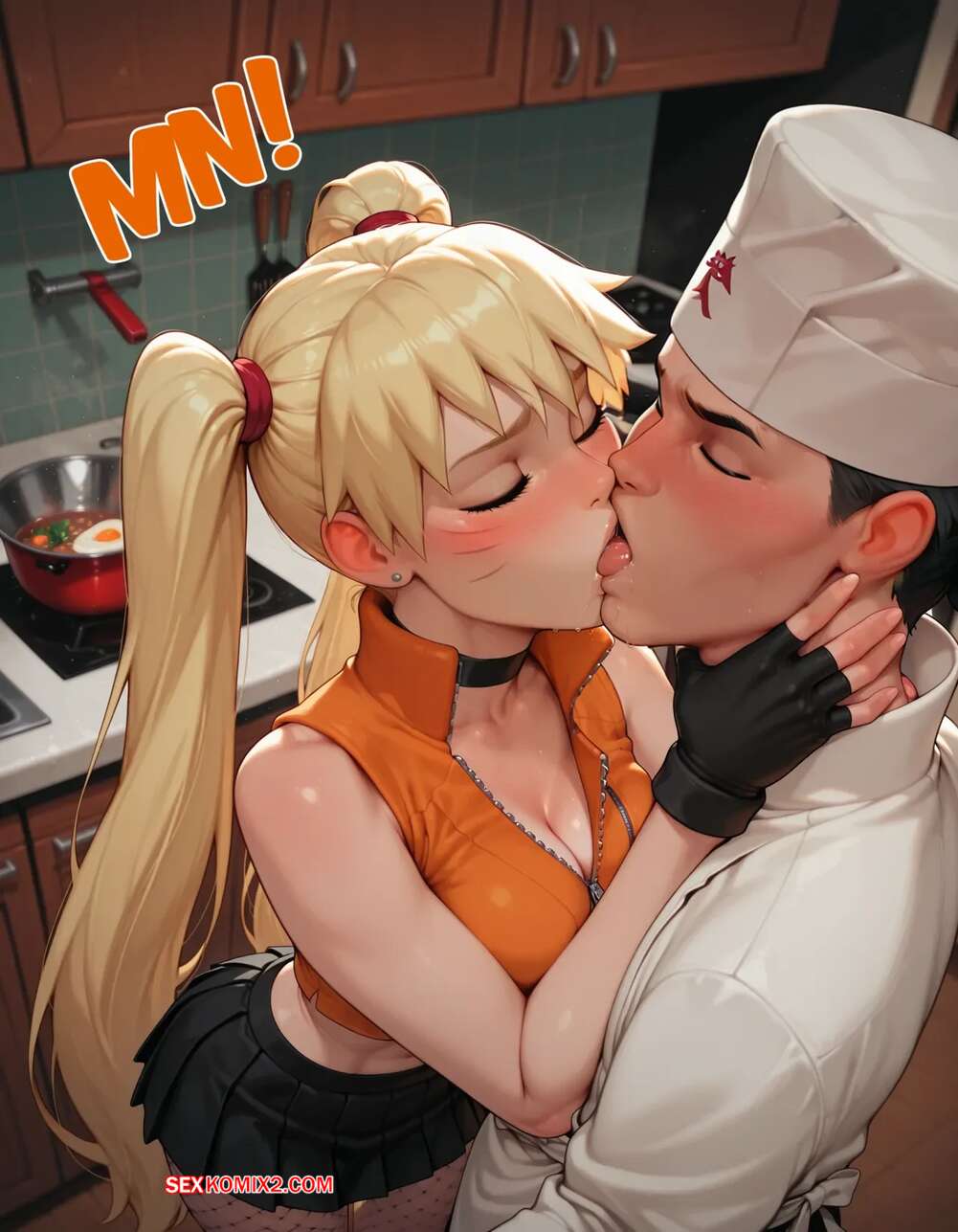 Порно комикс Наруто. Деревня Эрос. Часть 5. The Village of Eros. Sax Горячая блондинка возбуждена и решает повеселиться с парнем поваром. Она достала его член и стала его массировать, после чего встала на колени и начала дрочить его сиськами.