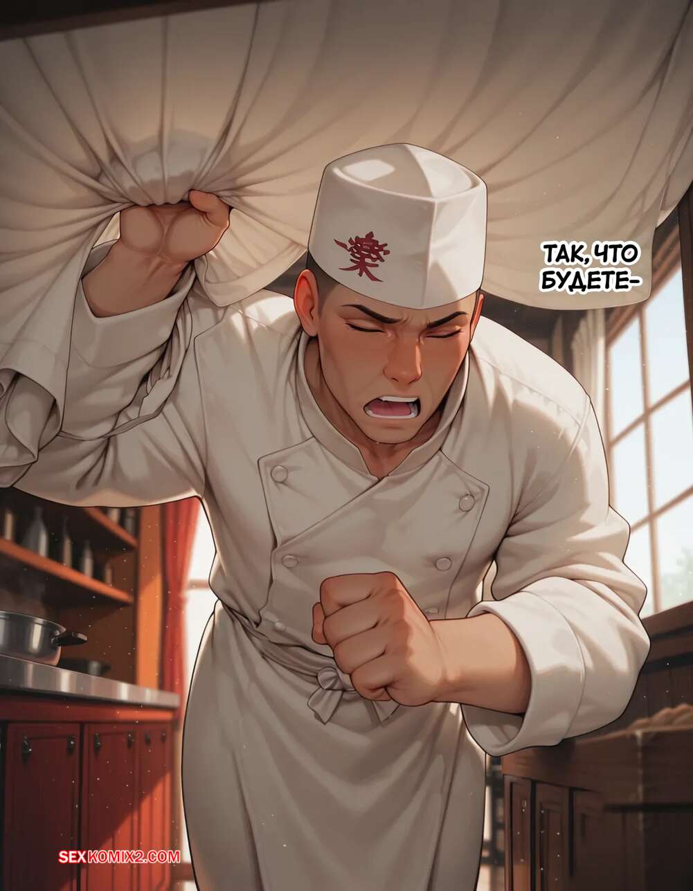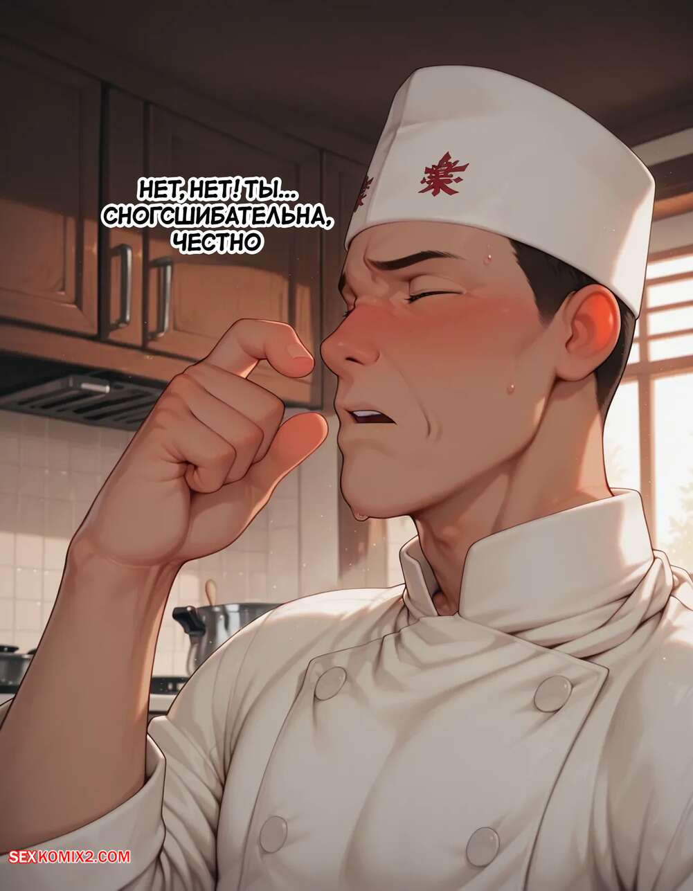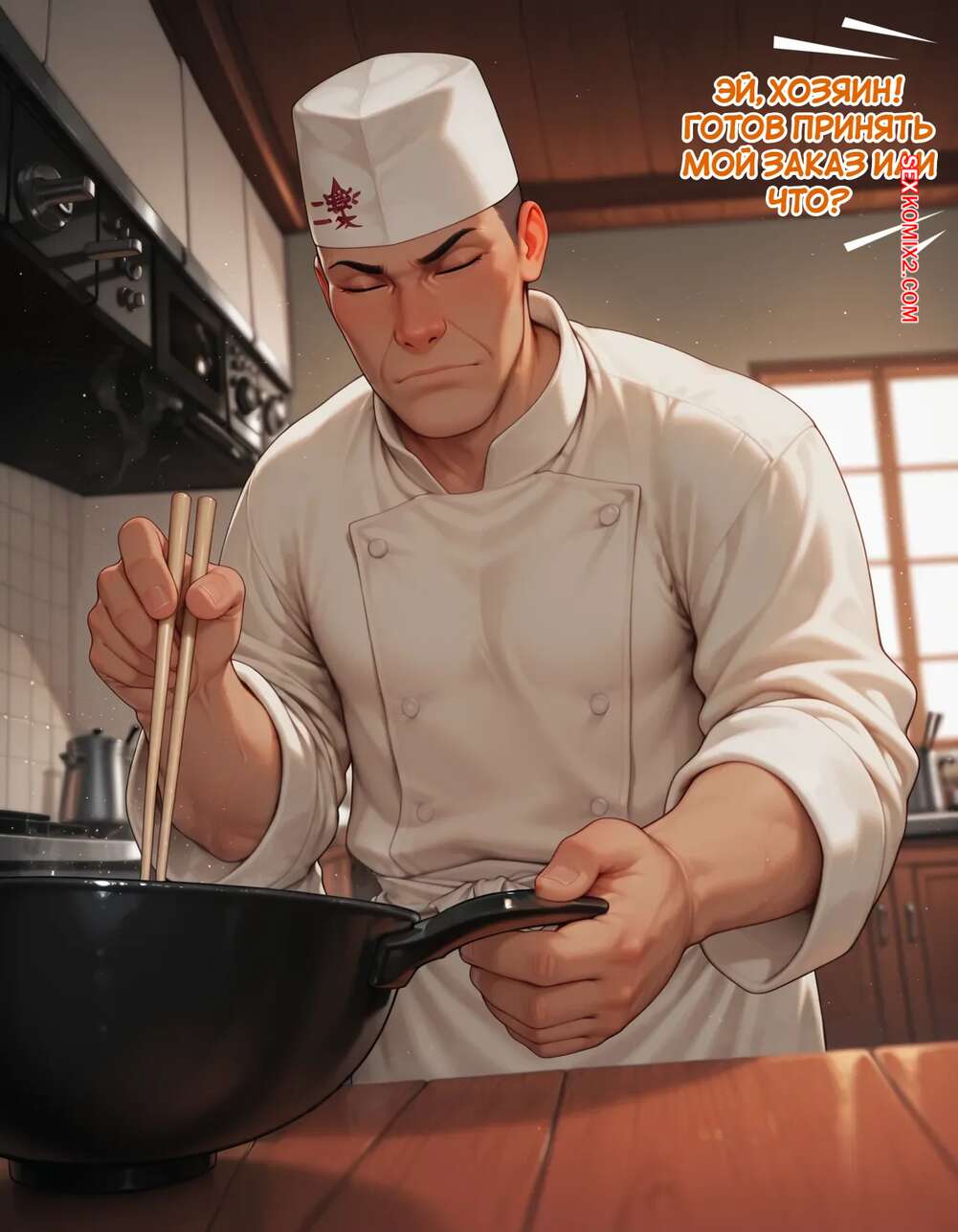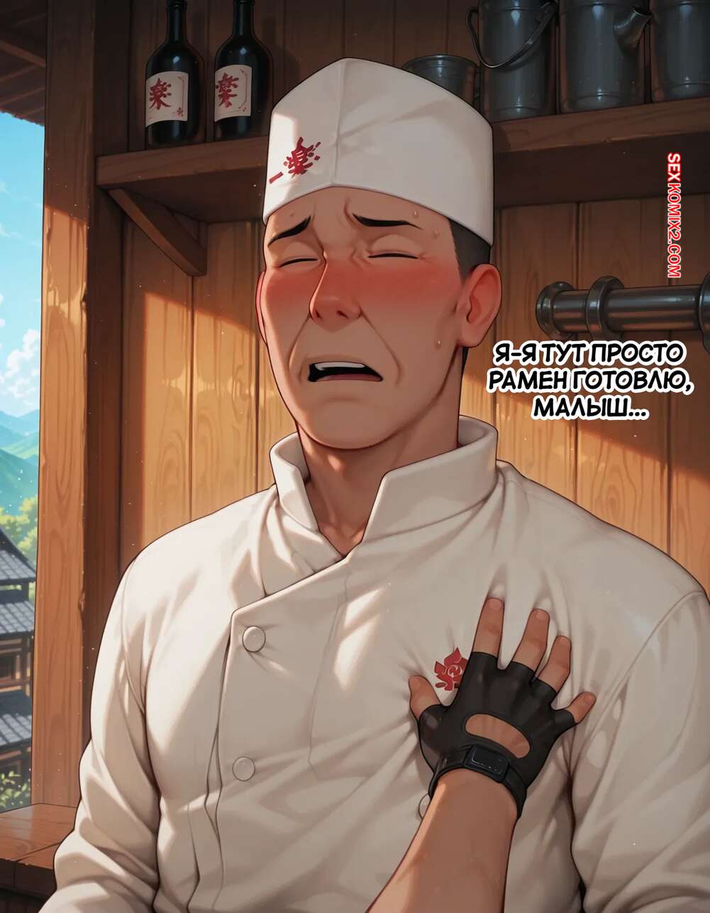 Порно комикс Наруто. Деревня Эрос. Часть 5. The Village of Eros. Sax Горячая блондинка возбуждена и решает повеселиться с парнем поваром. Она достала его член и стала его массировать, после чего встала на колени и начала дрочить его сиськами.