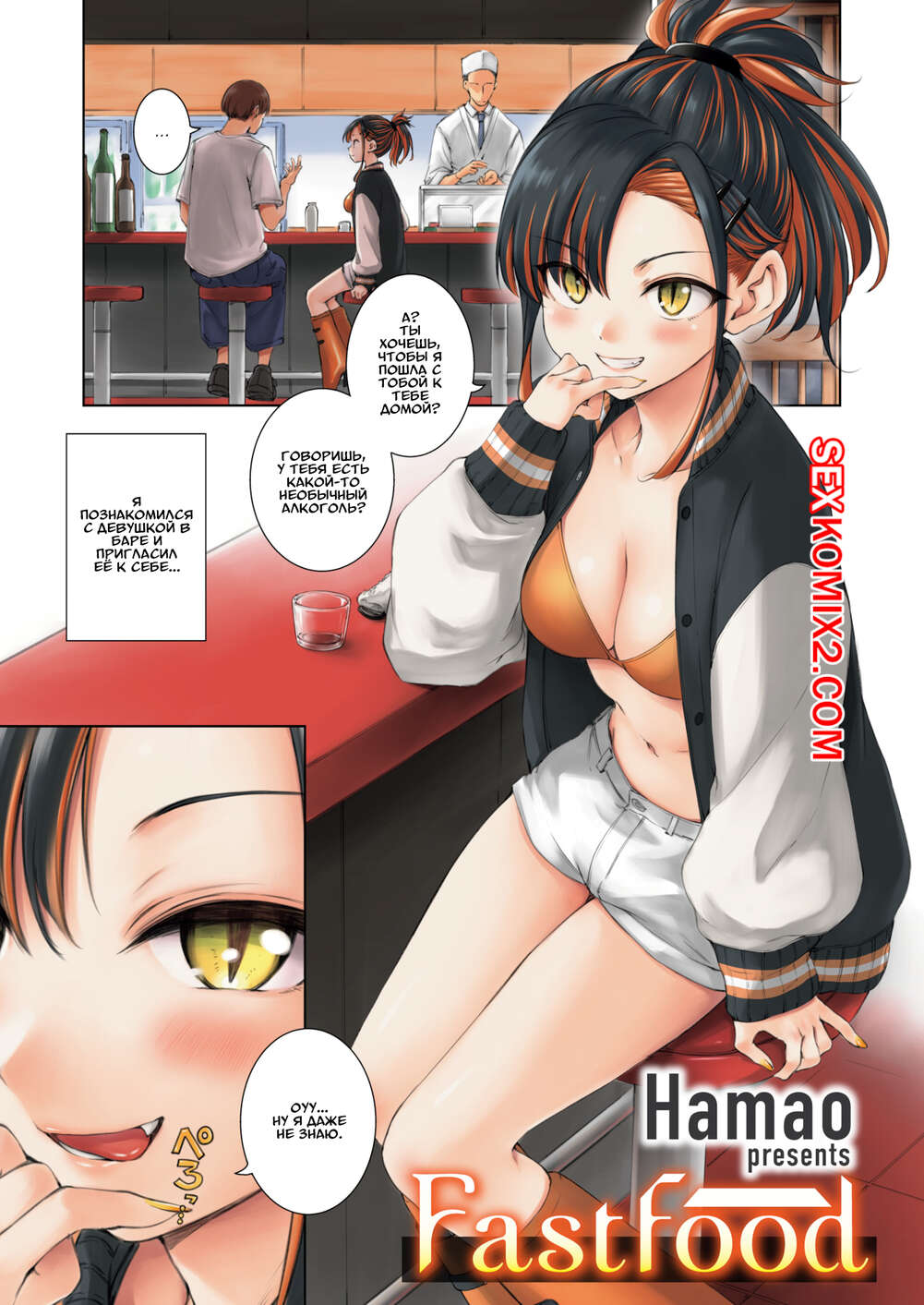 Порно комикс Фастфуд. Fast Food. Hamao Парень позвал девушку к себе, предложив выпить чтото особенное. Расслабленная девушка уложила паренька и стала сосать его член, после чего оседлала его и дала себя выебать.