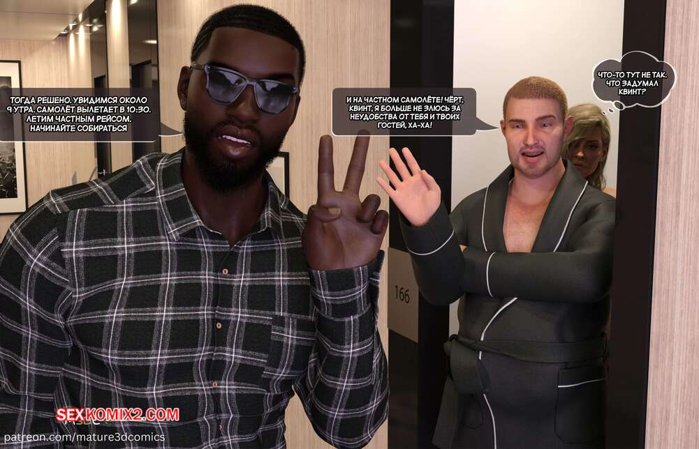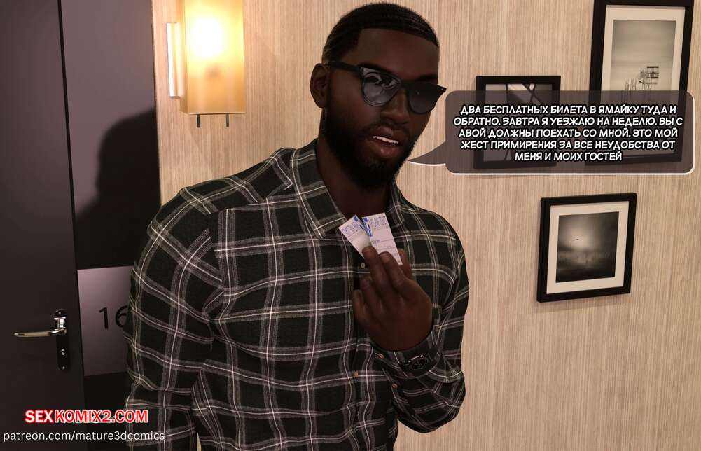 Порно комикс Грязный сосед. Часть 7. Naughty Neighbor. Mature3DComics Горячая милфа проснулась после ебли с темнокожим парнем в постели с мужем. К ним пришел сосед и подарил два билета на Ямайку, чему парочка была очень рада.