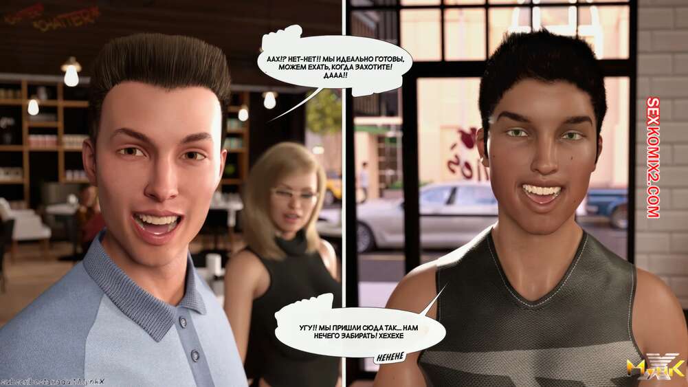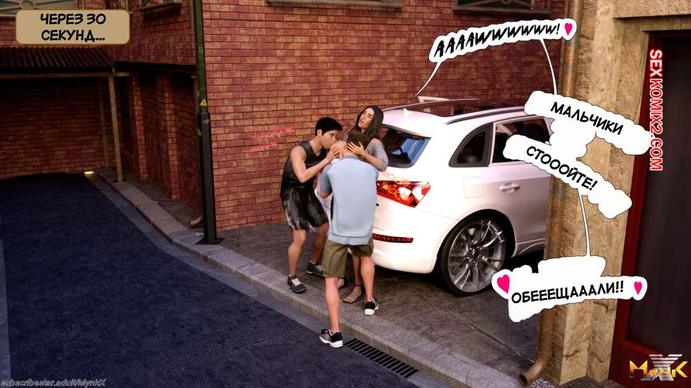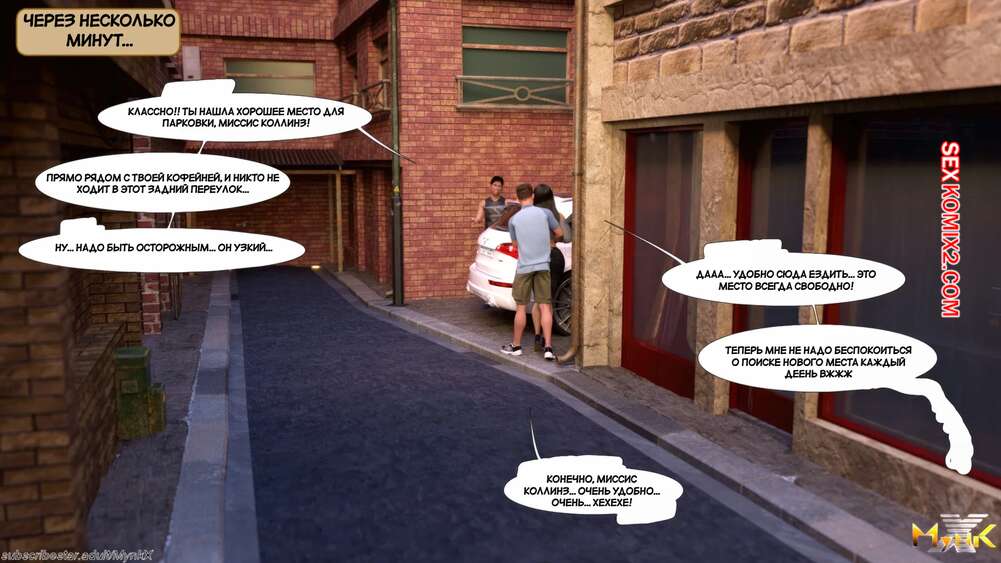 Порно комикс Кафе Фоли. Часть 6. Cafe Folies. Mynkx Два парня затащили брюнеточку в переулок и стали ее ласкать. Они сели в машину и один из парней уединился с красоткой на заднем сидении, где хорошенько ее трахнул.