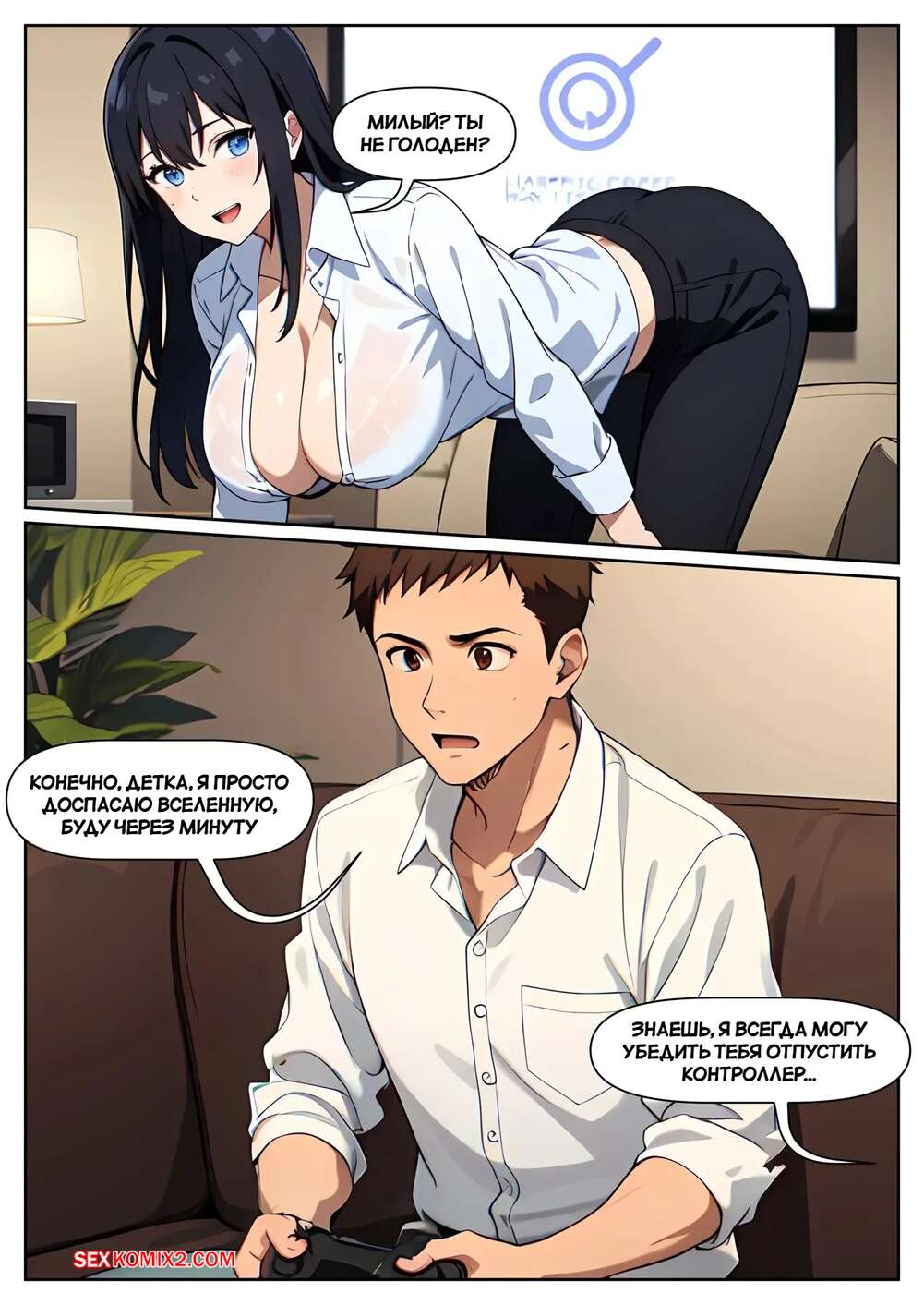 Порно комикс Благославление Мины. Часть 1. Minas Blessing. G U C. Парень был занят игрой в приставку, но его подруга решила пошалить. Она возбудила его шикарным телом и оседлала хуец парня, чтобы он ее хорошенько оттрахал.