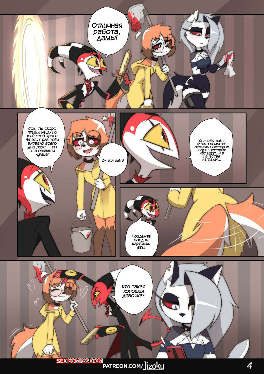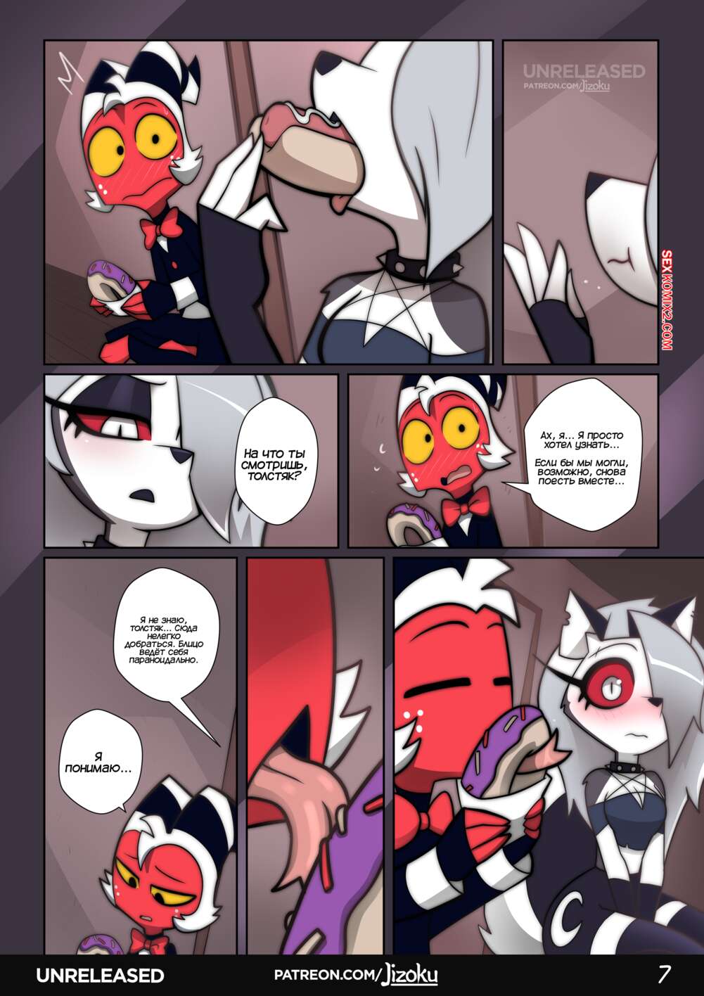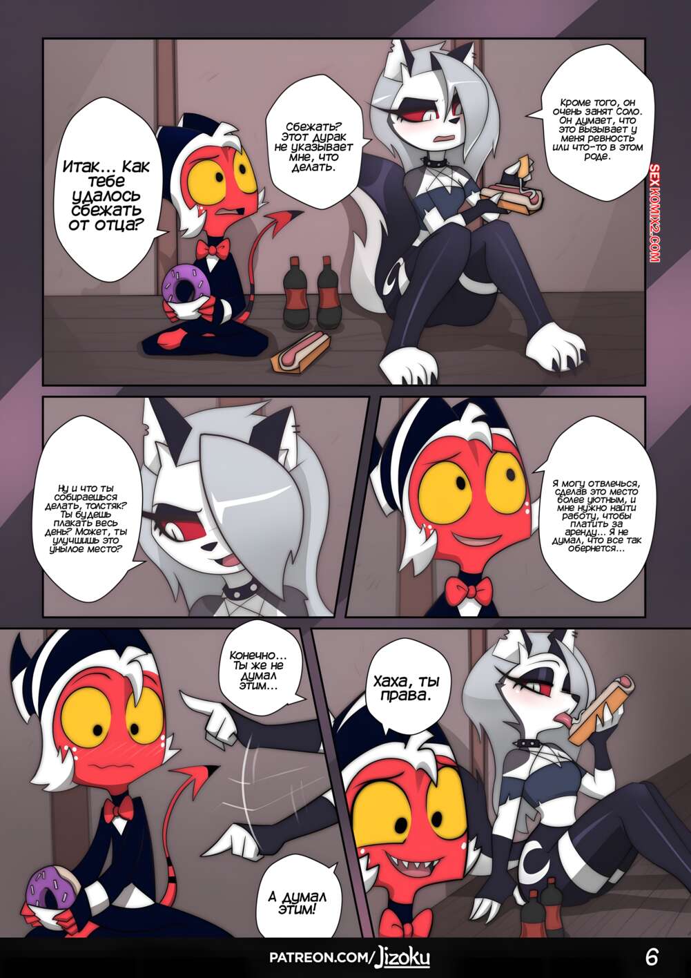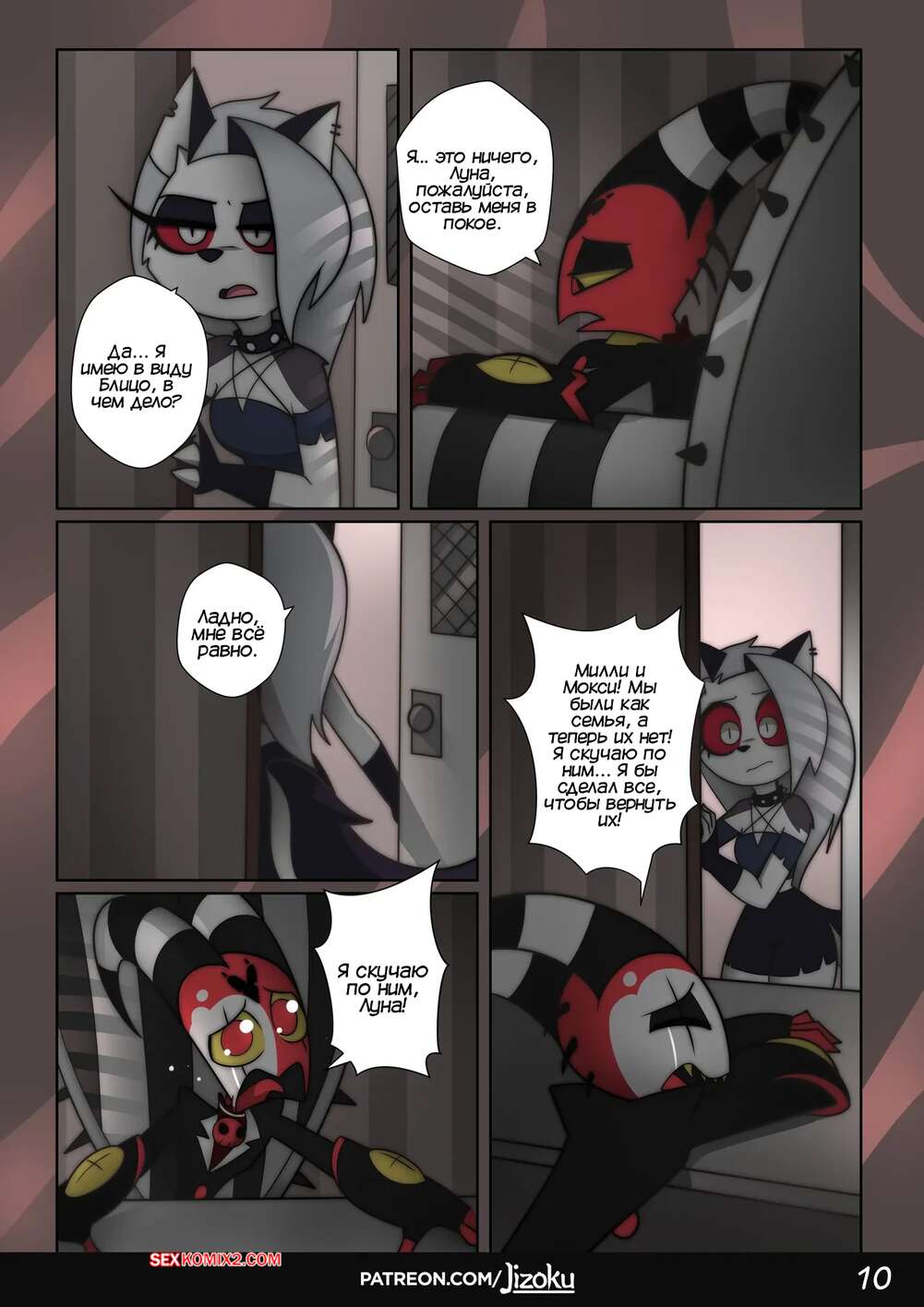 Порно комикс Адский Босс. Ночь с Луной. Часть 3. A Night With Loona. Jizoku У Мокси возникли проблемы и ему некуда деваться. Он приглашает Луну на встречу и рассказывает ей обо всем. Девушке становится жалко парня и она решает ему помочь.