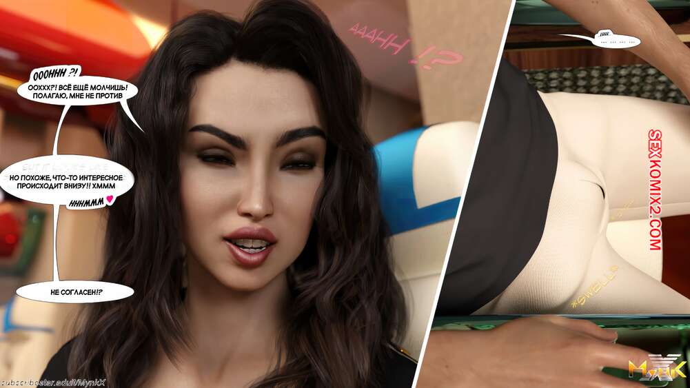 Порно комикс Веселье на высоте. AltitudeFun. Mynkx. Во время полета на самолете горячая стюардесса положила глаз на молодого парня и предложила ему повеселиться. Они отправились в туалет, где красотка отсосала хуй парня и дала ему себя выебать.