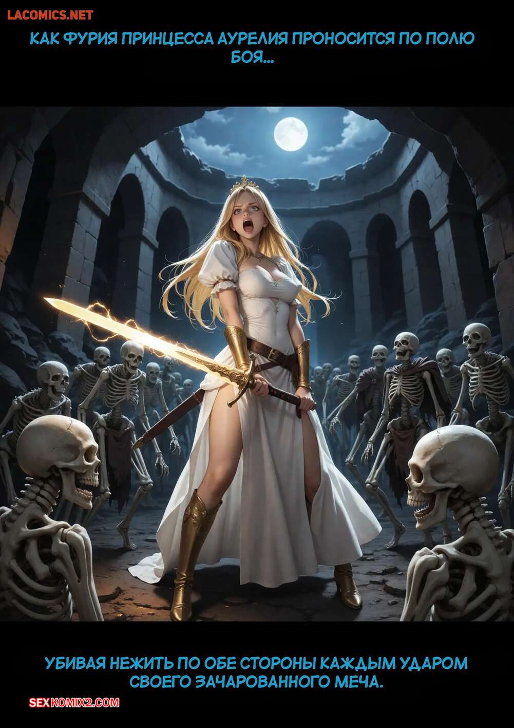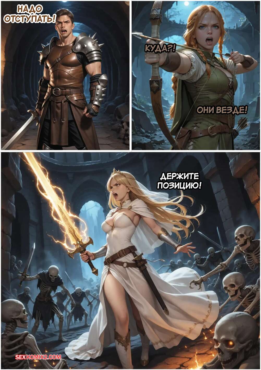 Порно комикс Принцесса и маг. Часть 4. The Princess and the Mage. HexxetVal. Возбужденные красотки разделись перед парнем и возбудили его аппетитными формами. Девушки уложили парня на землю и оседлали его член, чтобы он их хорошенько выебал.