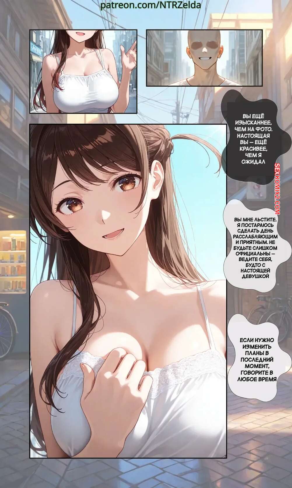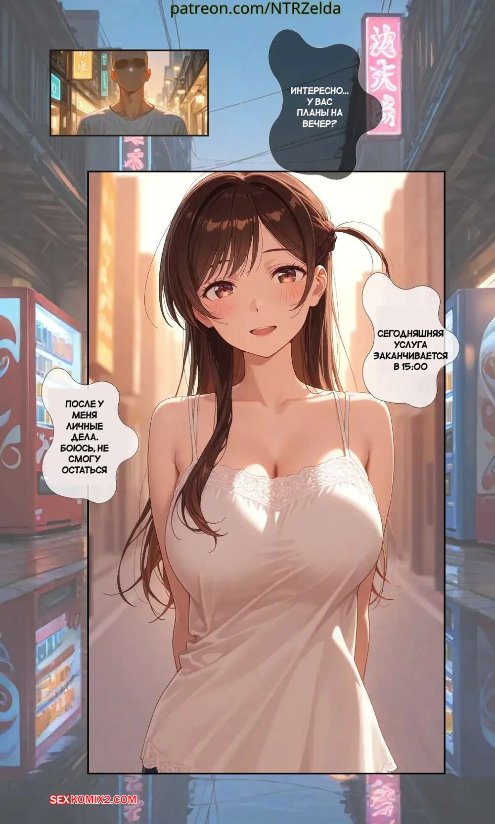 Порно комикс Закат. Инн Ичиносе. Пролог. Sunset Inn Ichinose Prologue. NTRzelda. Горячая брюнетка знакомится с парнем и вскоре начинает перед ним позировать в сексуальном белье. Он достал хуй и поставил девушку на колени, чтобы она ему отсосала.