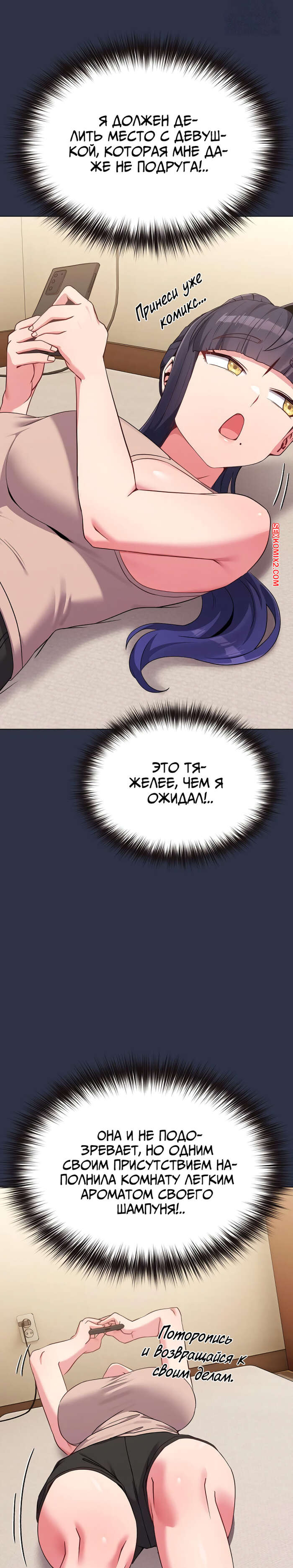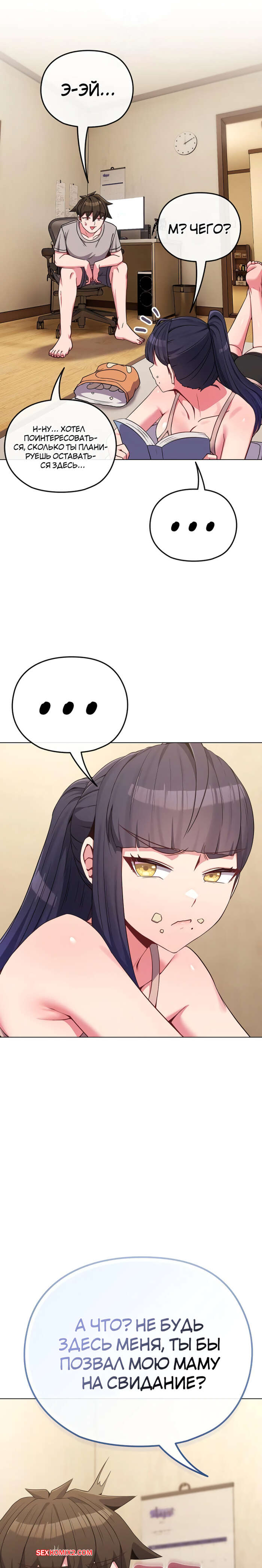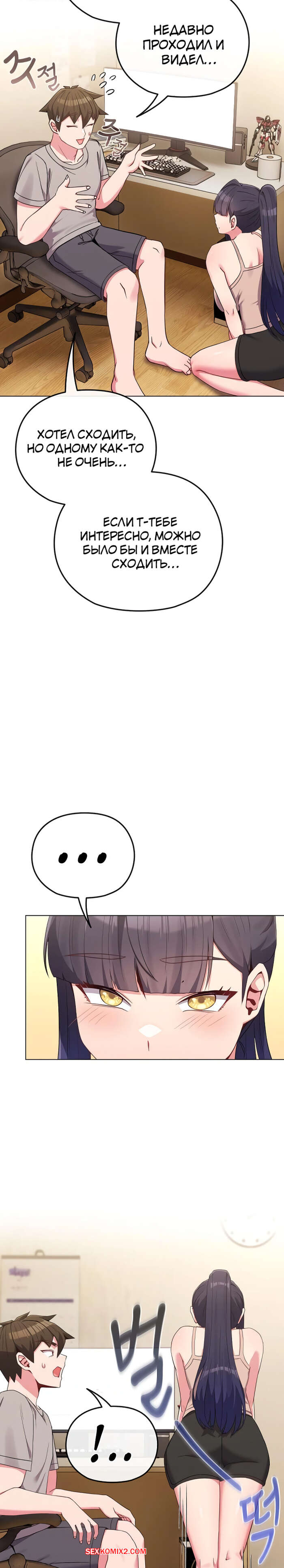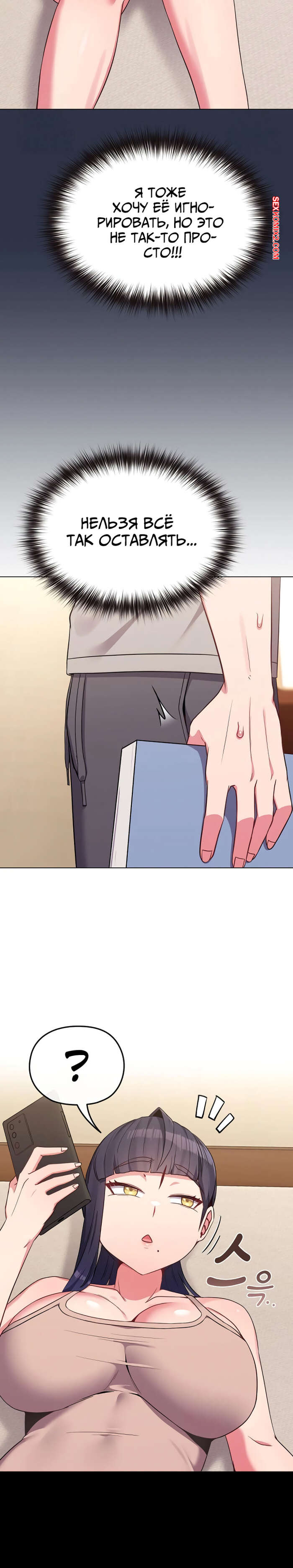 Порно комикс Моя дочь твоя ровесница. Часть 29 и 30 и 31. ttal i neolang dong gab inde Парень пришел в комнату горячей брюнетки и застал ее лежащей на кровати в откровенном наряде. Он очень быстро возбудился, но изо всех сил старался сдержать свою похоть.