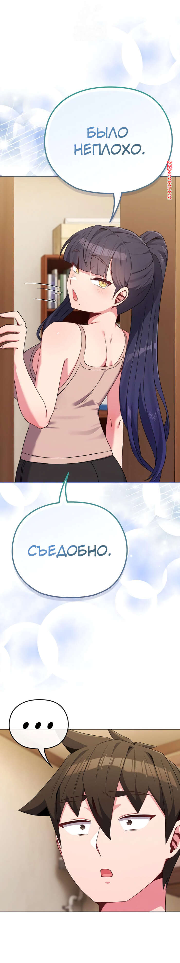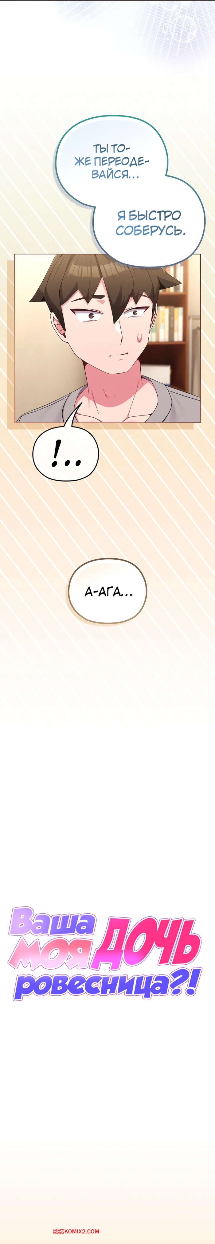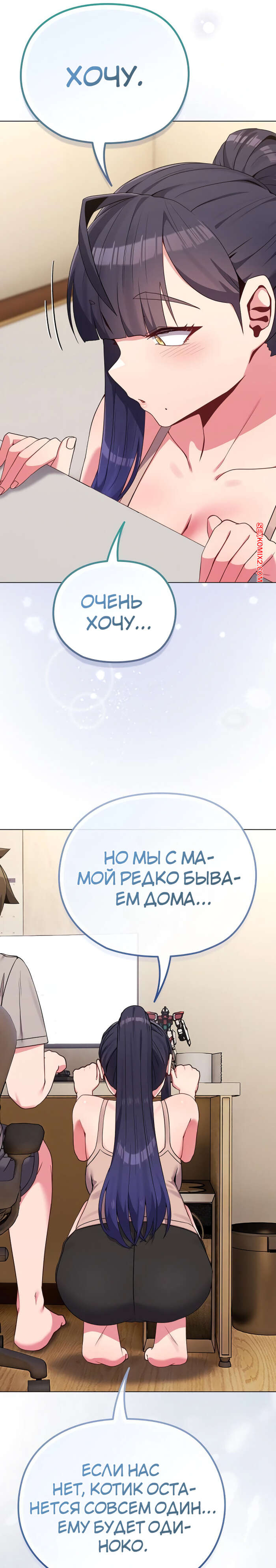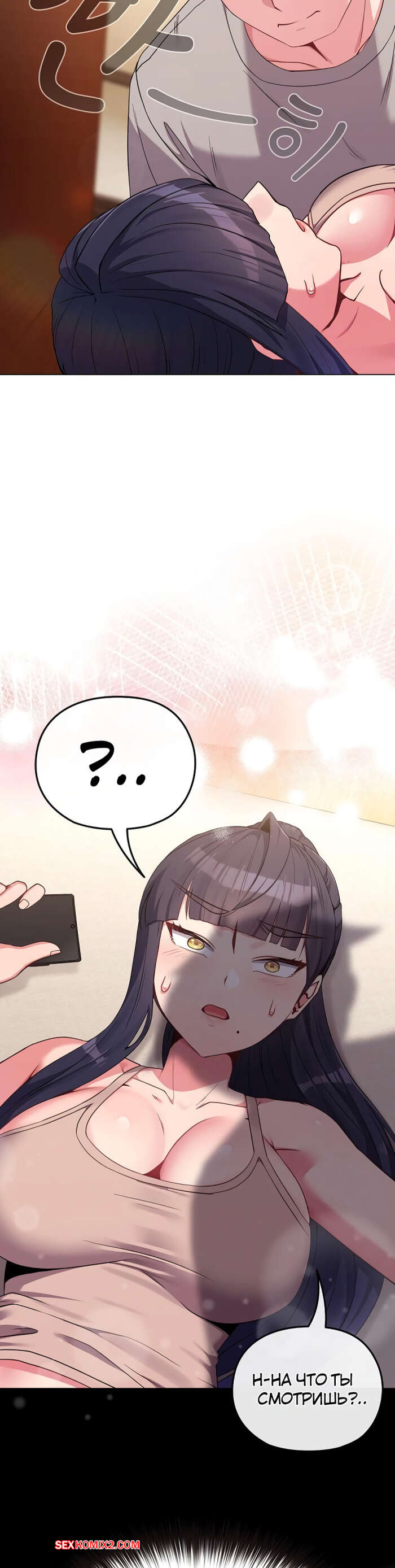 Порно комикс Моя дочь твоя ровесница. Часть 29 и 30 и 31. ttal i neolang dong gab inde Парень пришел в комнату горячей брюнетки и застал ее лежащей на кровати в откровенном наряде. Он очень быстро возбудился, но изо всех сил старался сдержать свою похоть.