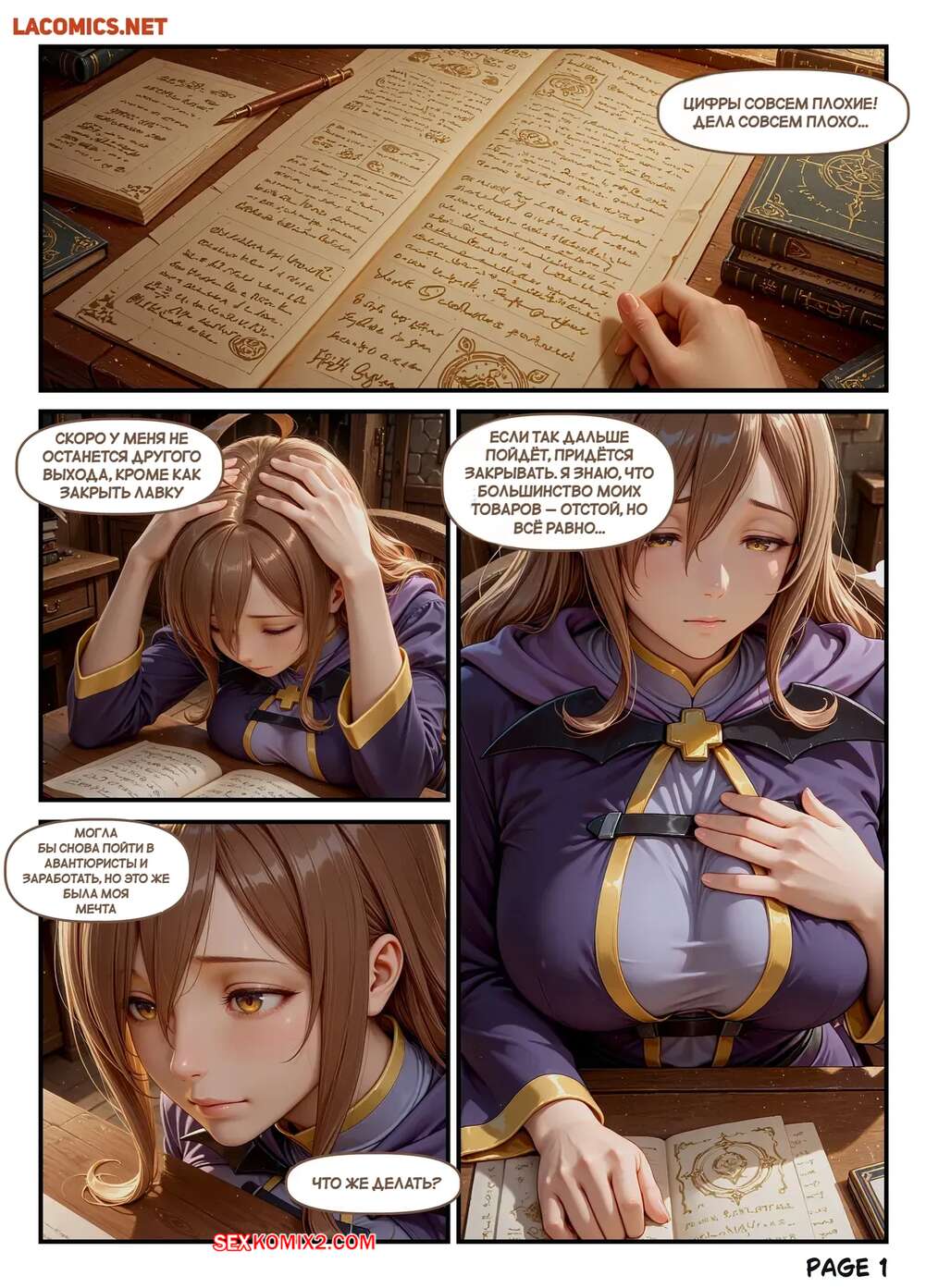 Порно комикс Долг Виз. Wizs Debt. AI Generated. Горячая брюнетка задолжала парню и он решил получить оплату натурой. Он ставит девушку на колени и дает отсосать свой член, после чего хорошенько ее трахает и заполняет своей спермой.