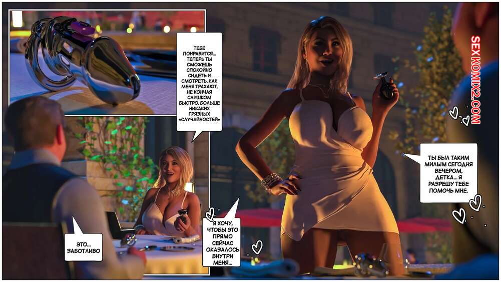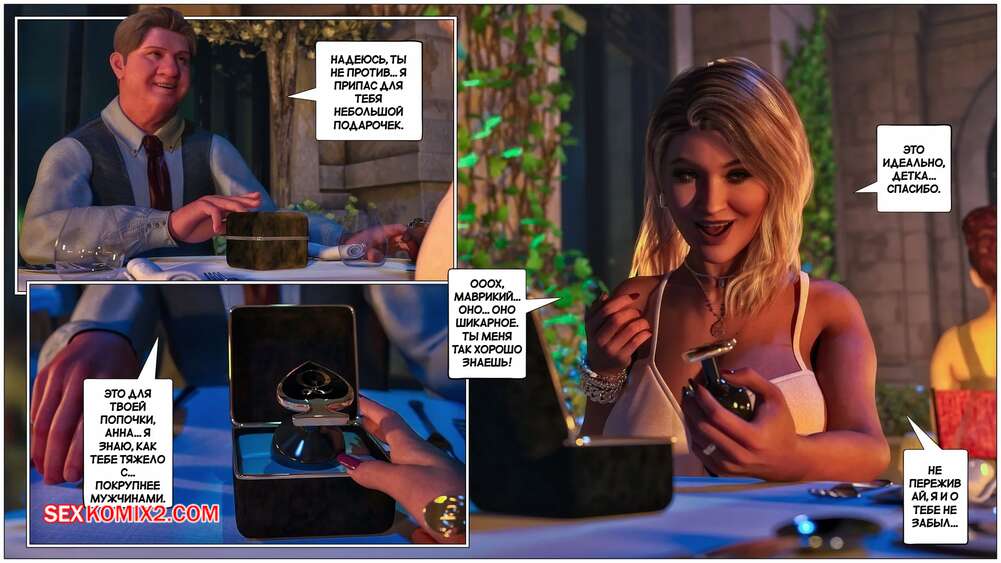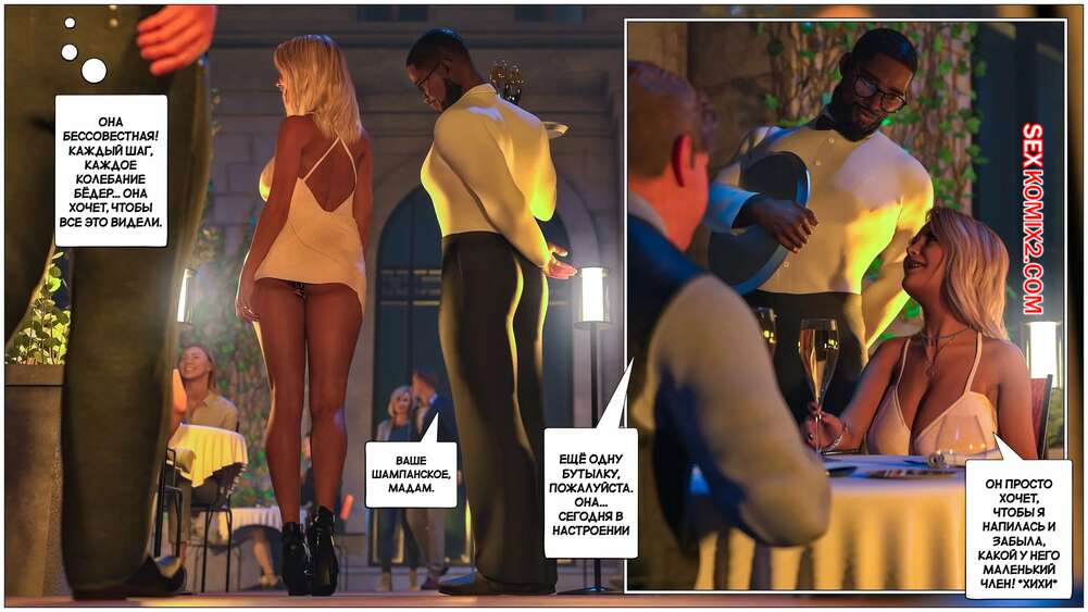 Порно комикс Черная метка. Часть 4. Black Marked. Tab109 Мужик привел свою жену шлюху в ресторан и сделал ей подарок в виде анальной пробки. Они отправились в туалет, где красотка раздвинула ножки и приняла в попку подарок, после чего пошла красоваться перед темнокожим официантом.