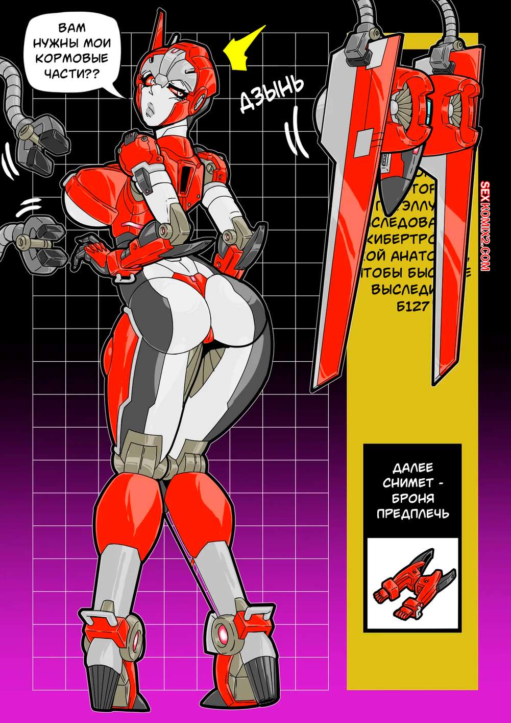 Порно комикс Transformers. Игры на раздевание Шаттер. Shatters Strip Game. MAD Project Красотка трансформер принимает участие в игре на раздевание. Механические руки снимают с нее доспехи и аппетитные формы девушки выставляют напоказ, от чего она начинает возбуждаться.