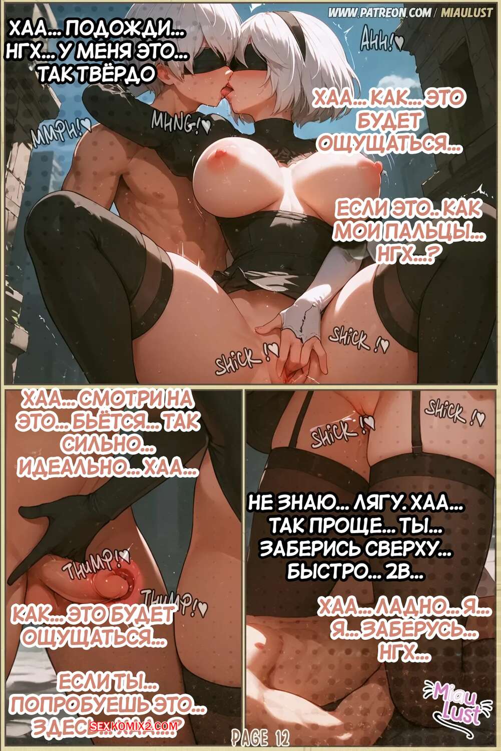 Порно комикс Nier Automata. 2B. Автомат. 2B in Sex Automata. MiauLust. Парень не может устоять перед шикарным телом своей подруги. Он страстно целует девушку, после чего насаживает ее на свой член и хорошенько трахает ее пизденку.