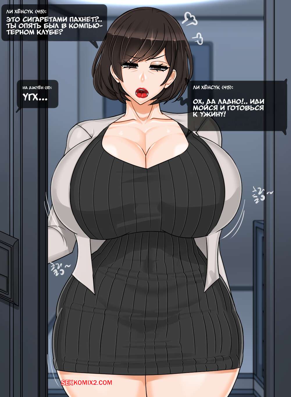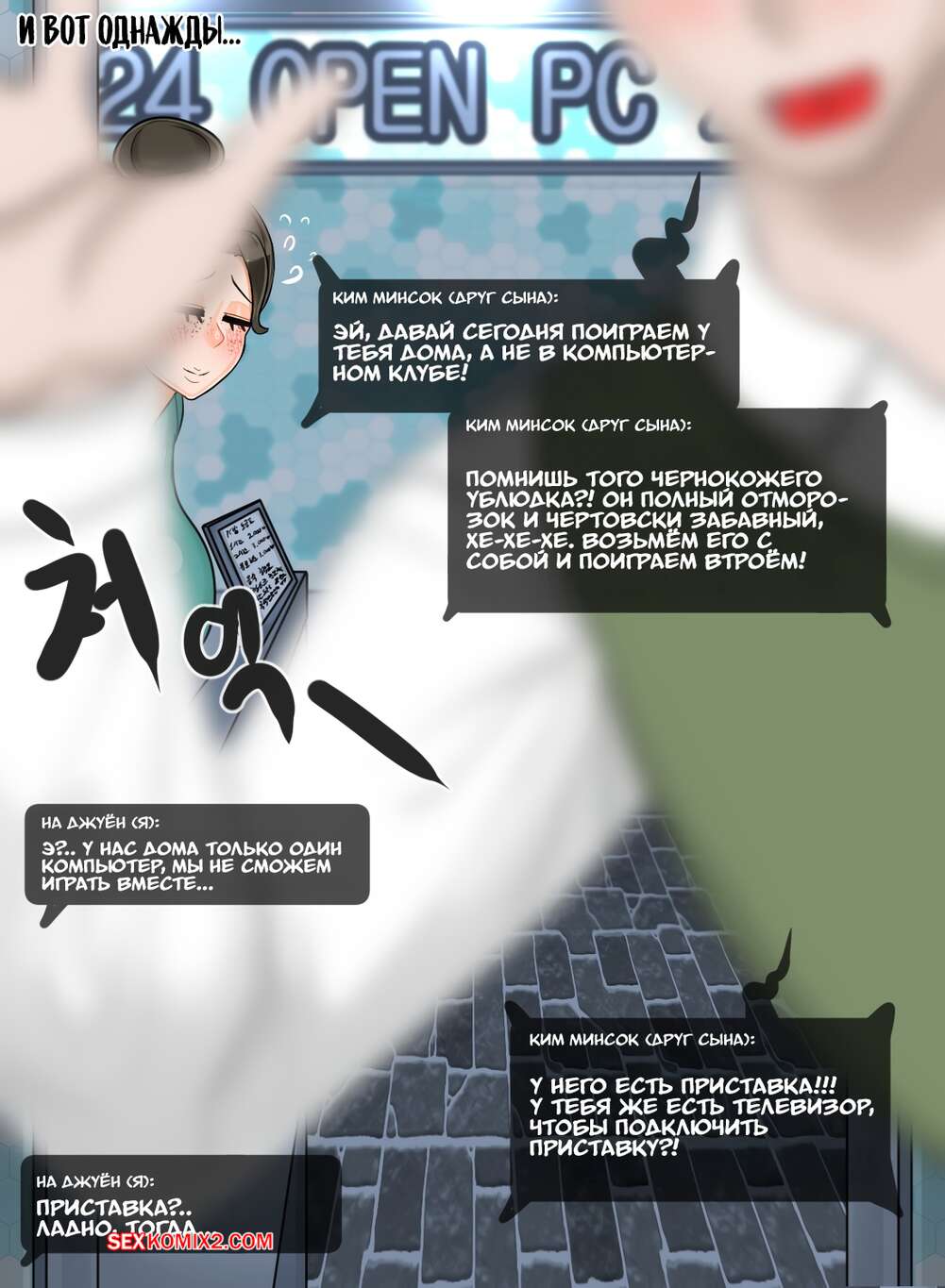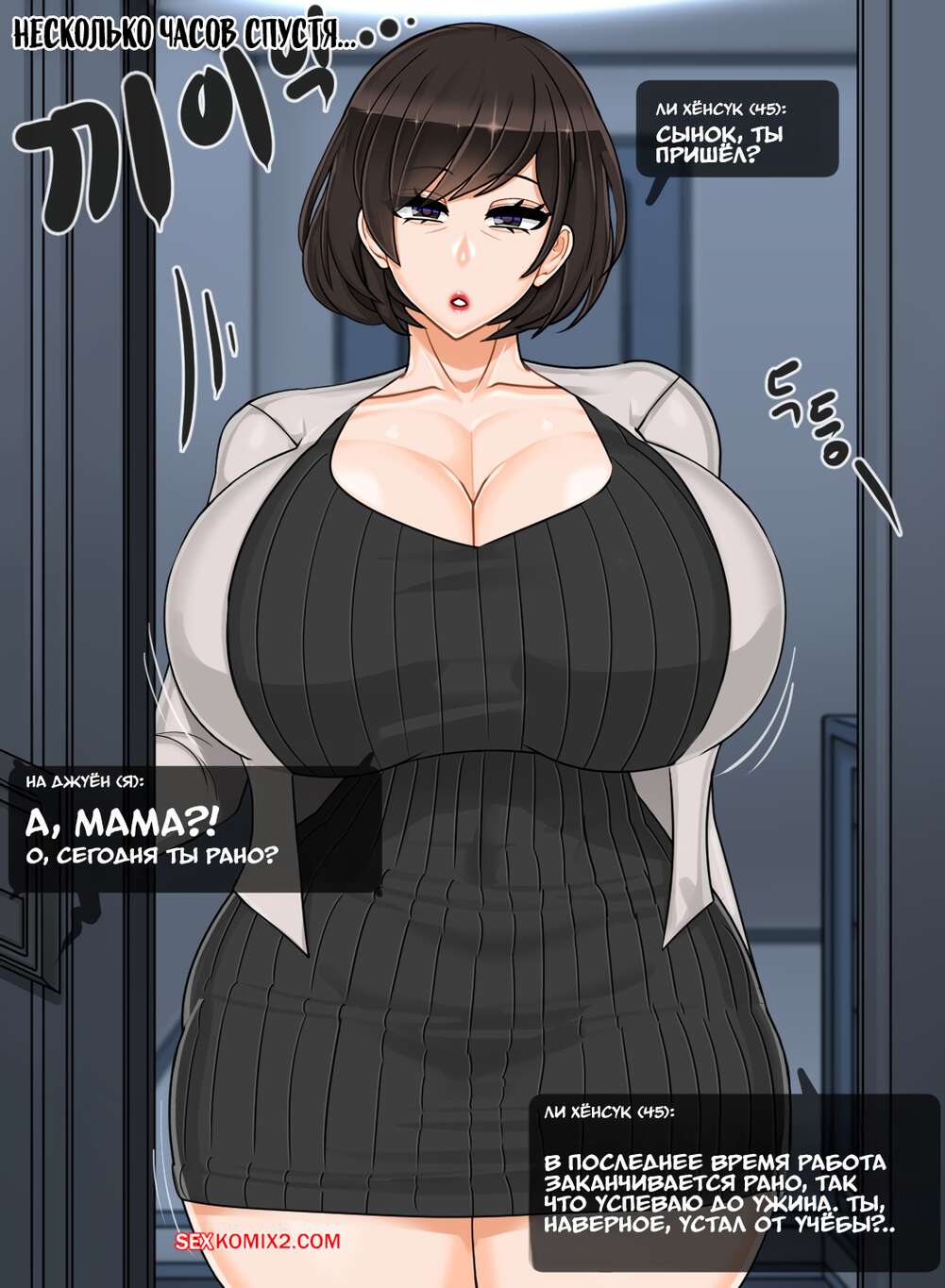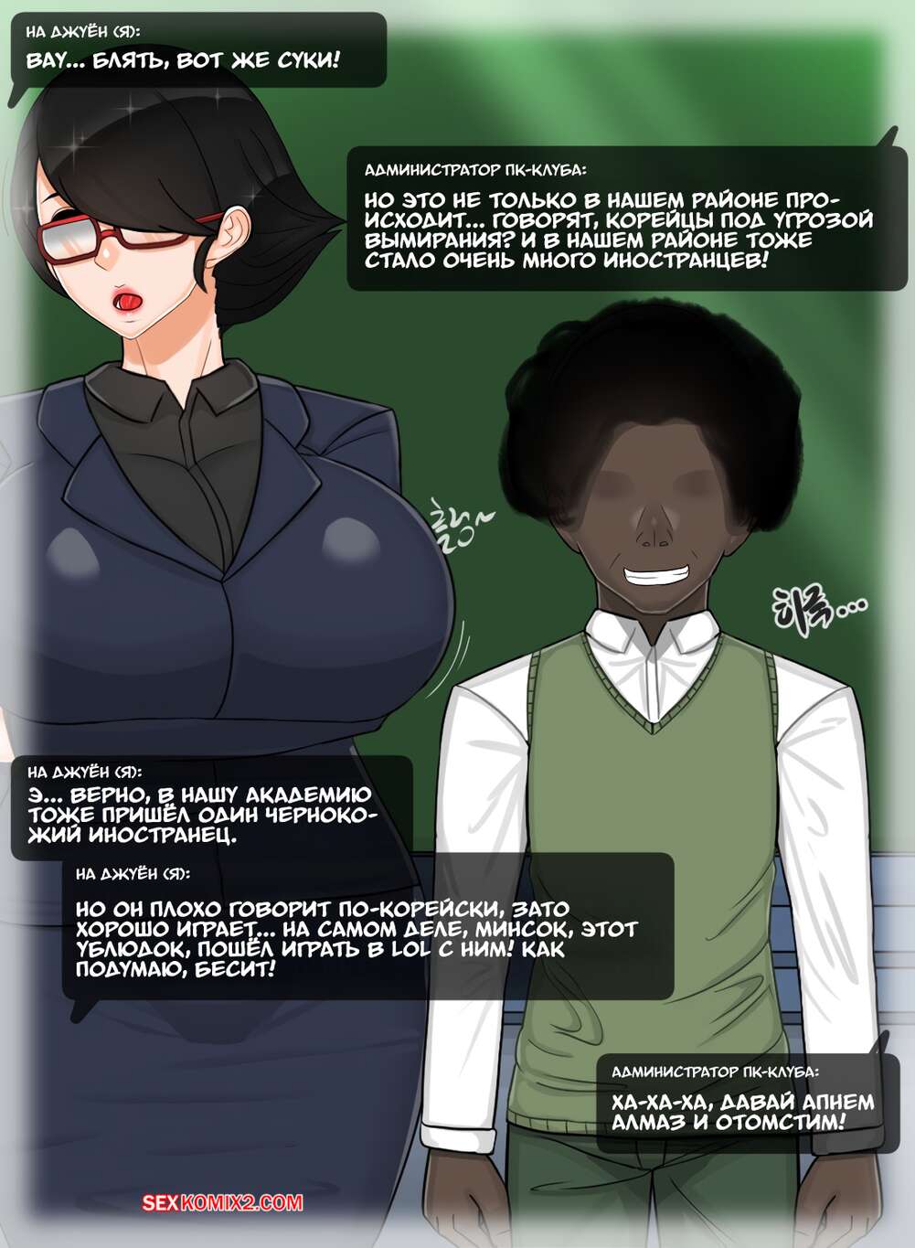 Порно комикс Твоя мамка супер. Эпизод с Ли Хёнсук. Blackgg Темнокожий парень положил глаз на горячую мамку своего дружка и соблазняет ее ласками. Сучка раздевается и отсасывает его большой хуй, после чего дает себя выебать.