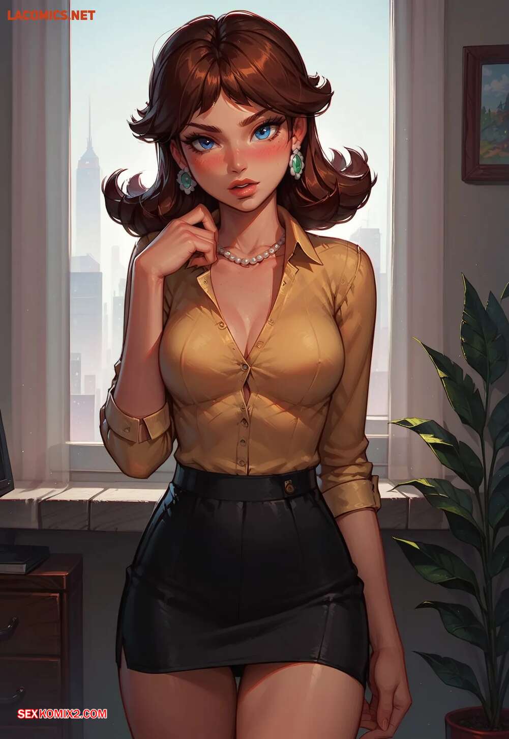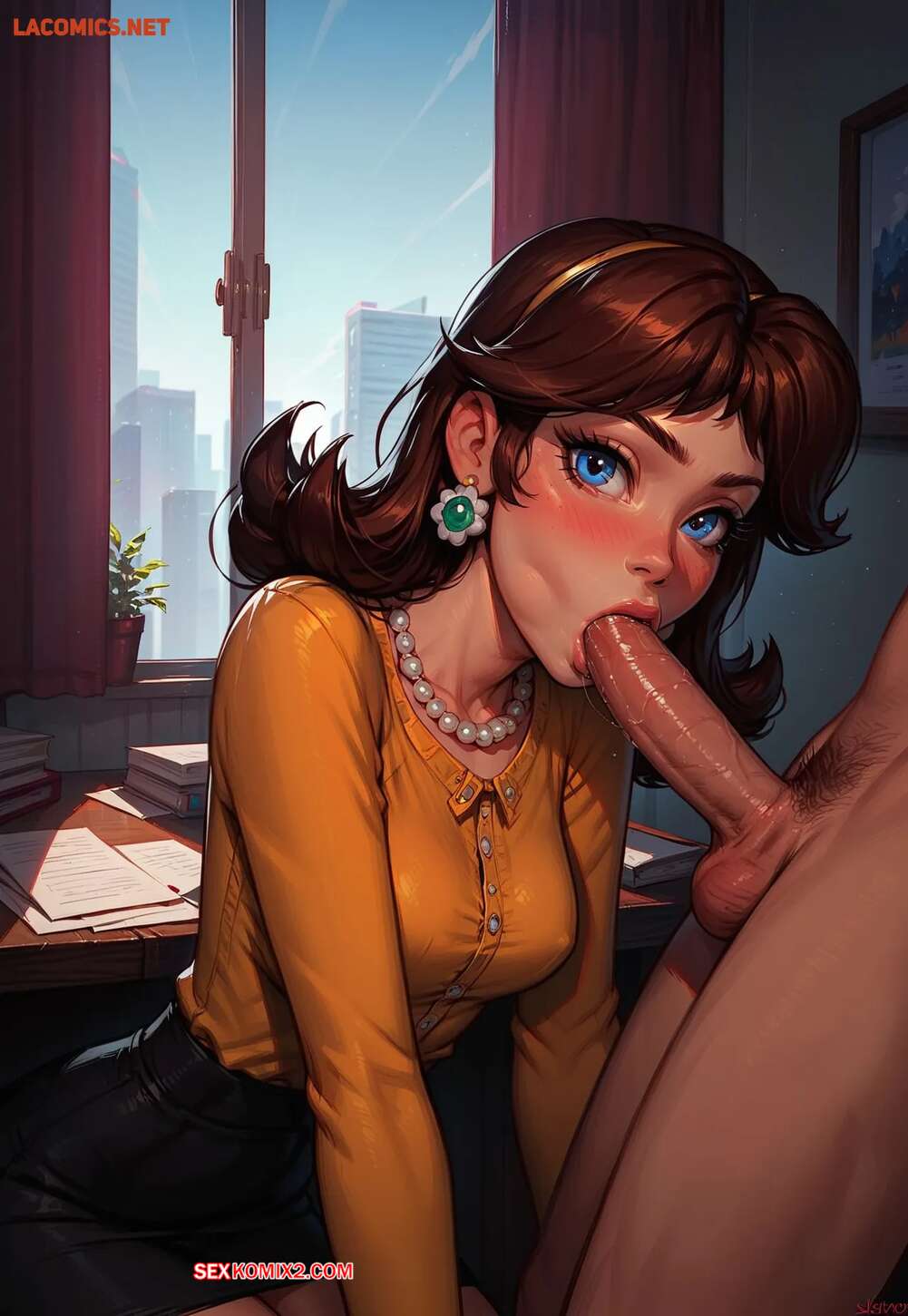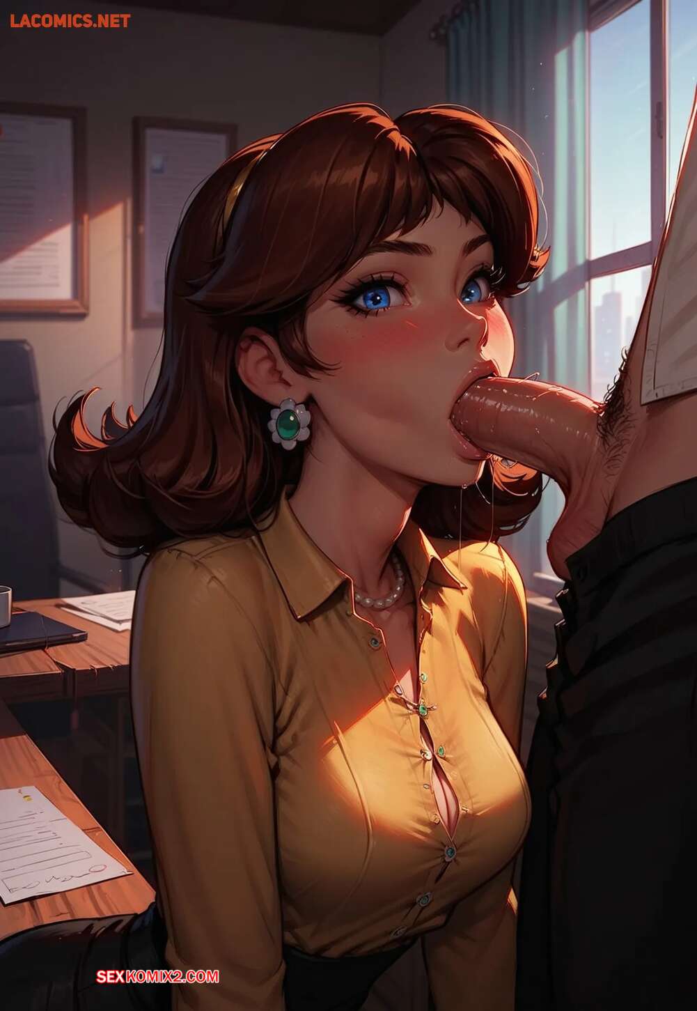 Порно комикс A Day with Secretary Daisy. LowFireStudios Горячая брюнетка возбудилась на работе и решила повеселиться со своим коллегой. Девушка разделась и отсосала его большой хуй, после чего раздвинула ножки и дала себя выебать.