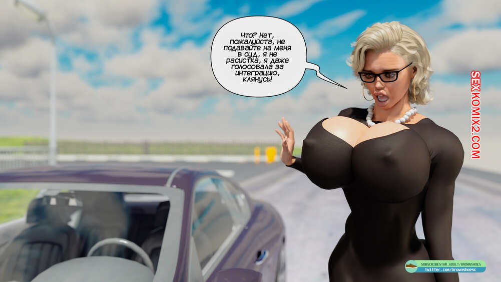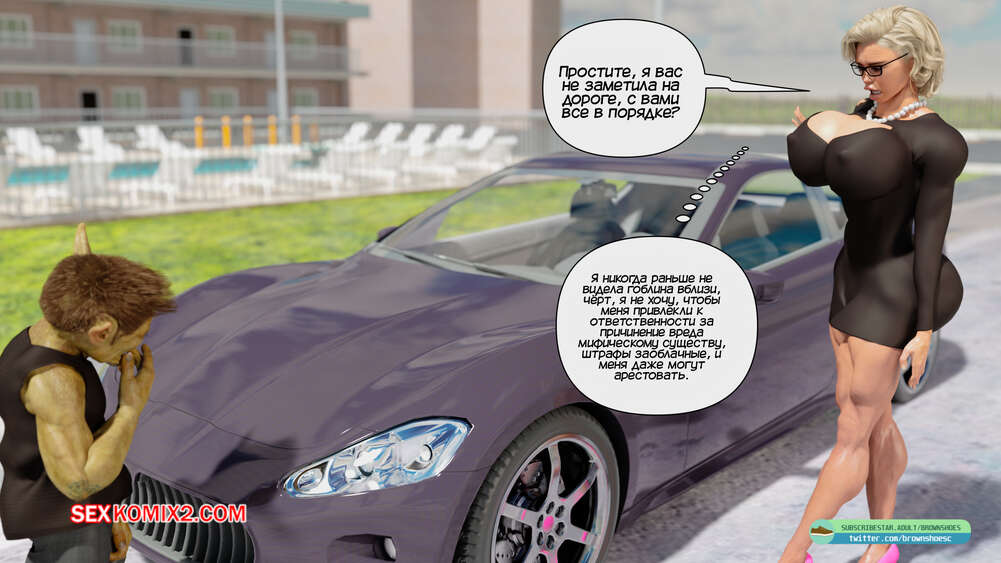 Порно комикс Рассказы Б.С. Часть 1. B.S Stories. Brown Shoes Горячая милфа сбила на машине гоблина и он узнал в ней популярную порно актрису. Он предложил ей избежать иска, если сучка возьмет в рот его огромный член, но все зашло гораздо дальше.