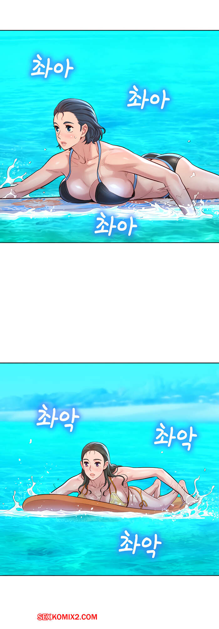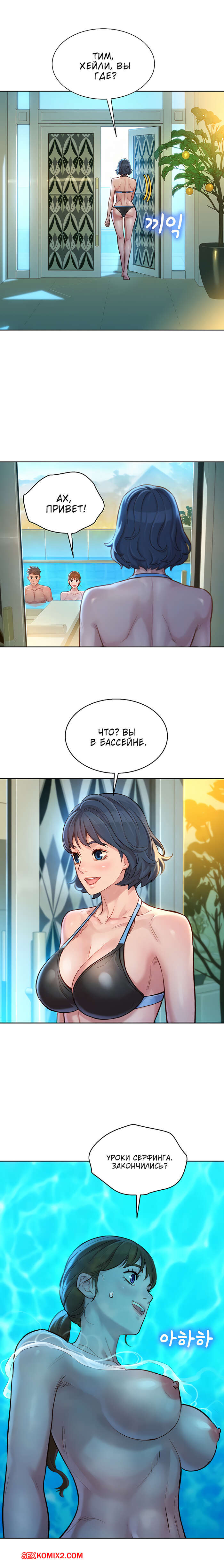 Порно комикс Сестра по соседству. Часть 130. Sister Neighbors. Пока две девушки из компании плавали по океану на сёрфе. Парень воспользовался данной возможностью и занялся сексом со своей девушкой прямо в бассейне.