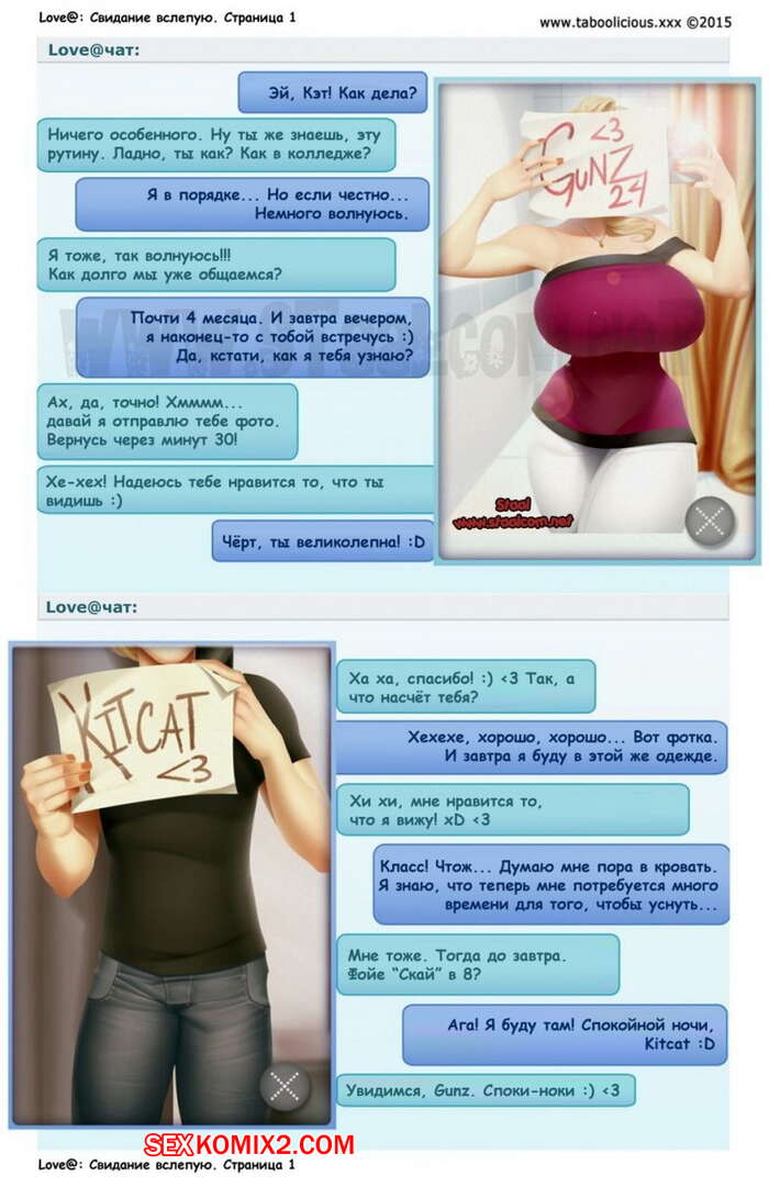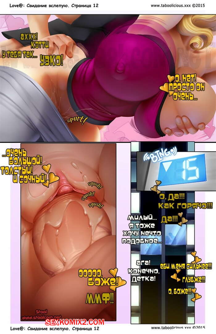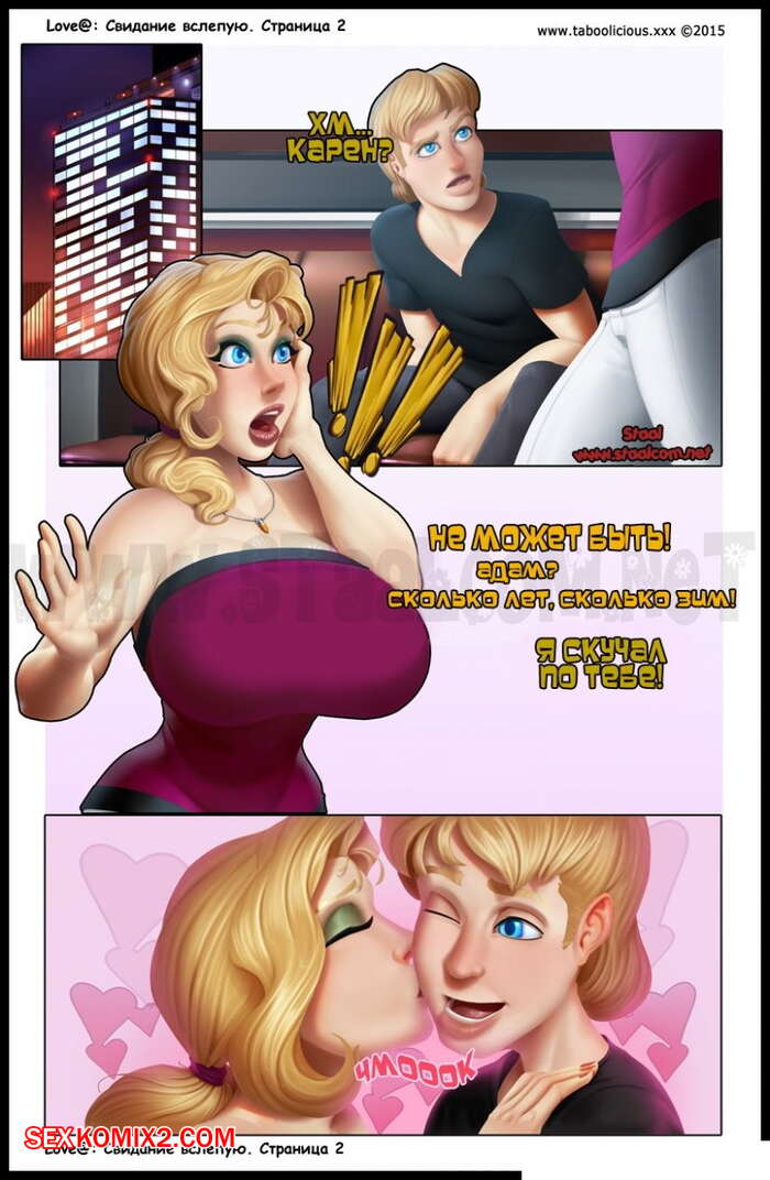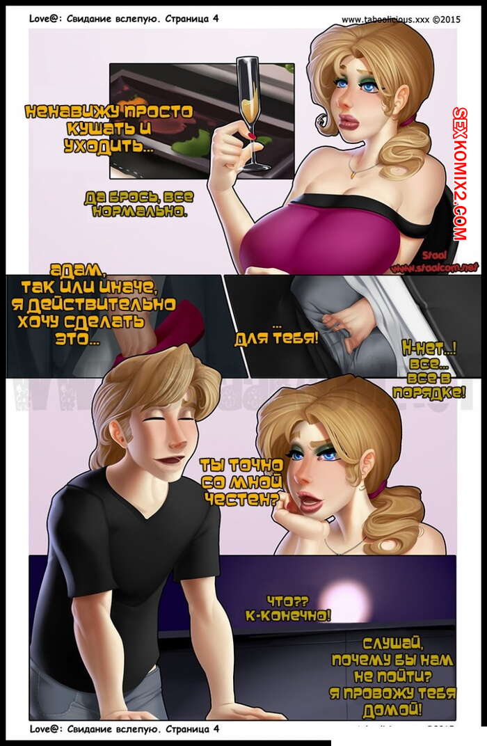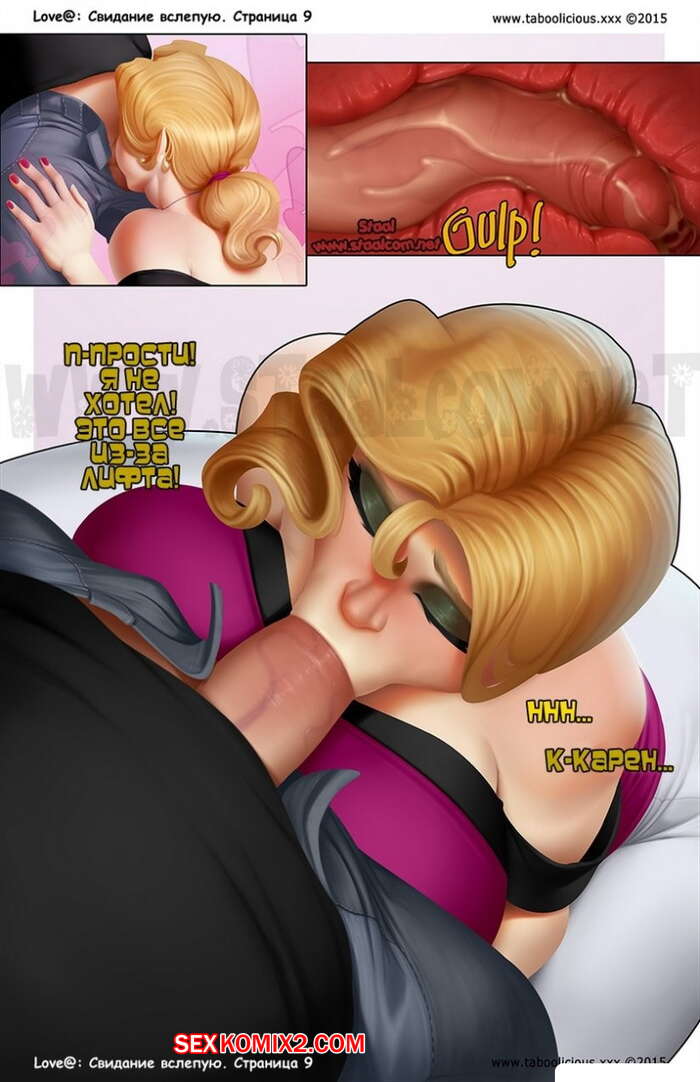 Порно комикс Свидание вслепую. Taboolicious Парнишка с сисястой блондинкой решили устроить свидание вслепую, но увидев друг друга они были шокированы, что уже давно знакомы. Хорошо проведя время, они уже ушли из ресторана и когда они ехали в лифте, красотка стала отсасывать его большой хуй, после чего попросила, чтобы он ее выебал.
