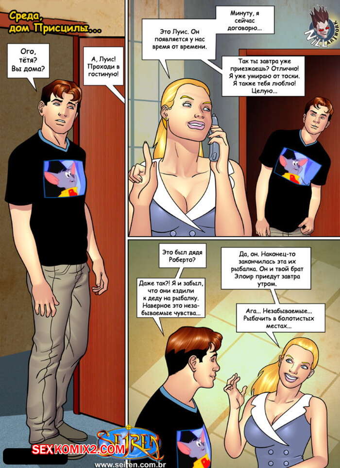 Порно комикс Горячая кузина. Часть 10 После того как парнишка отъебал свою кузину с ее подругой, у него выпал шанс остаться наедине с его горячей тетей, которое желала трахнуть парня, после того, как спалила его со своей дочкой. Они страстно ебались, но их спалила девушка, которая с радостью к ним присоединилась.