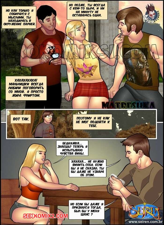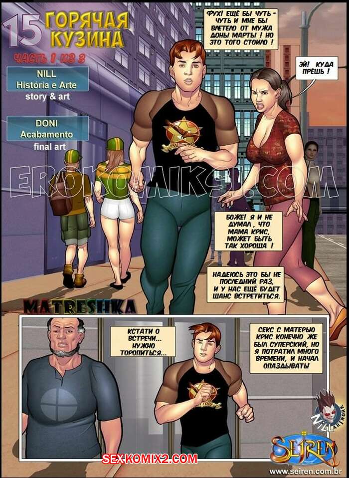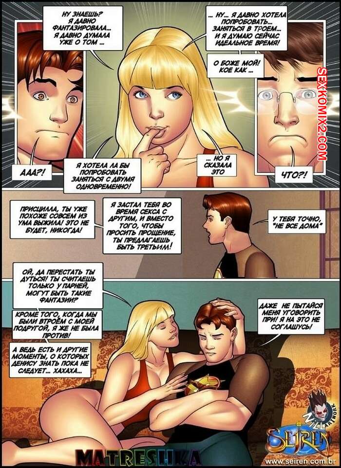 Порно комикс Горячая кузина. Часть 15 Горячая блондинка решила отблагодарить своего спасителя и дала ему себя выебать. Их за этим делом застал ее кузен, но сучка решила извлечь все плюсы из этой ситуации и предложила парням вдвоем себя выебать.