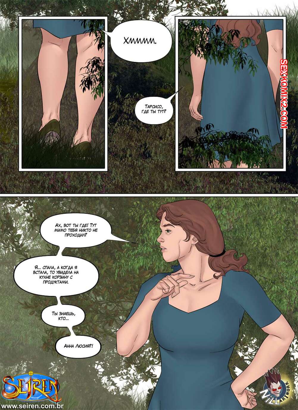Порно комикс Анна Люсия. Часть 2. Эпизоды 1 и 2 Деревенская красотка спалила как на ферме девушка ебалась с двумя мужиками. Все это ее очень возбудило, и она оправилась в лес подрочить, но там уже был дрочащий парень. Она решила помочь и ему и себе и предложила ему поебаться.