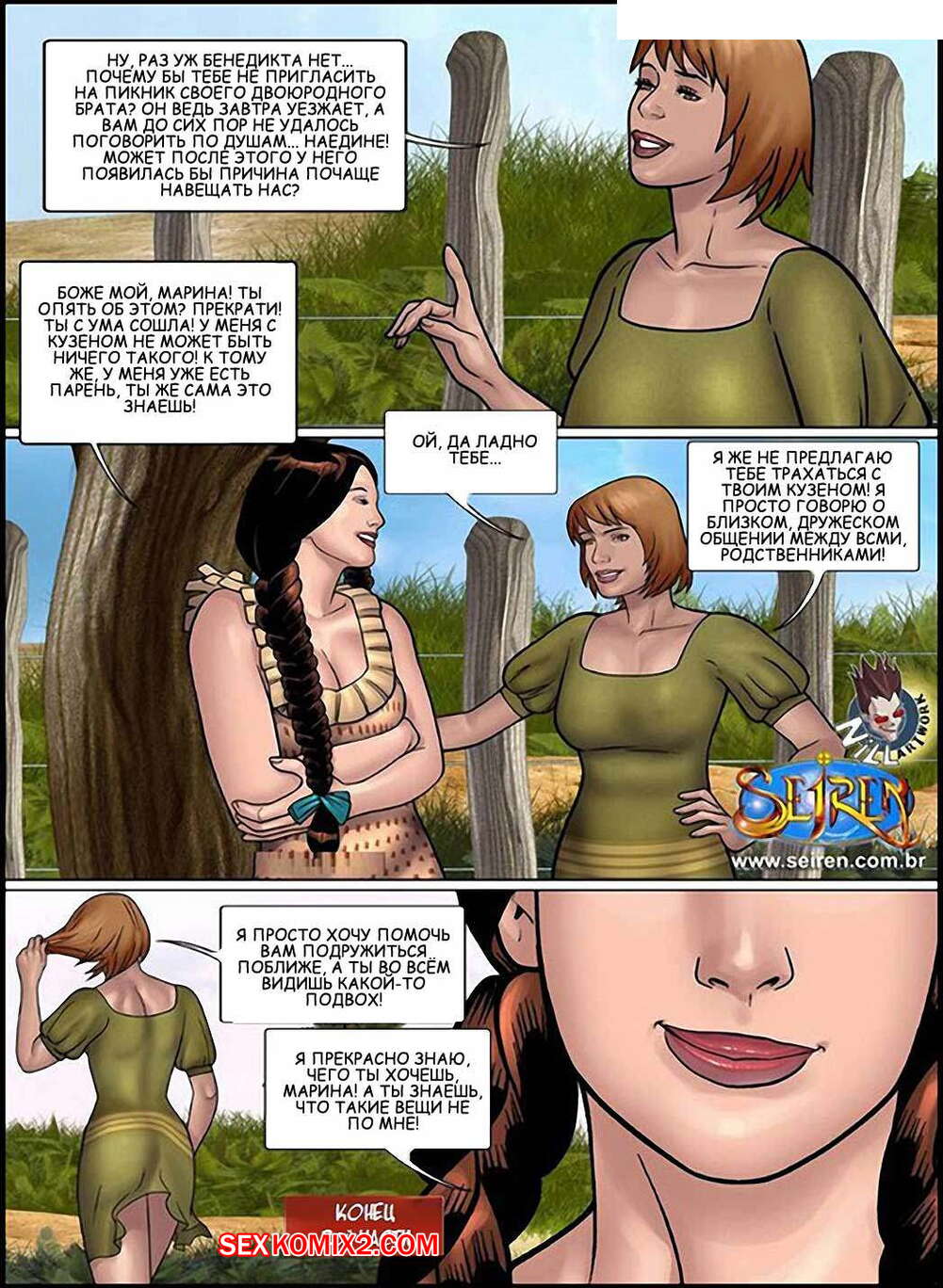 Порно комикс Горячая кузина. Часть 18. Эпизоды 1 и 2 и 3 Шикарные блондинка и брюнетка решили повеселиться и стали совращаться своими прекрасными горячими телами паренька. От такого зрелища у него естественно быстро встал хуй, поэтому красотки начали у него отсасывать, а затем попросили его хорошенько их выебать.