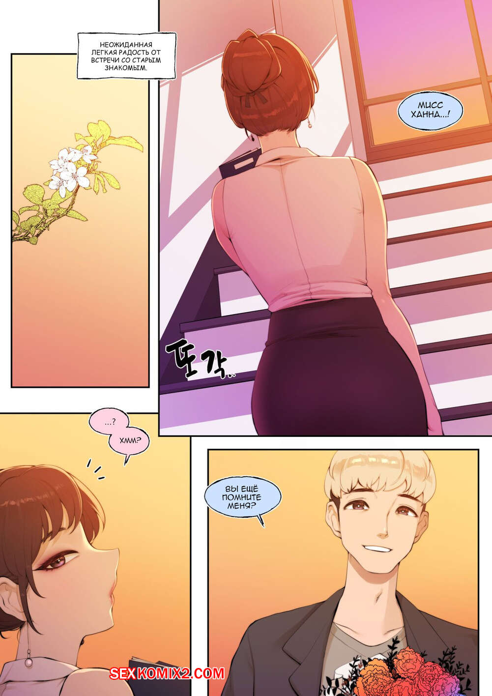 Порно комикс Милость наставника. Tutor Grace Молодой парнишка пришел к горячей сисястой милфы с цветами. После того, как они хорошо посидели, парень стал приставать к сучке, лаская ее сиськи, а затем и вовсе ее выебал.