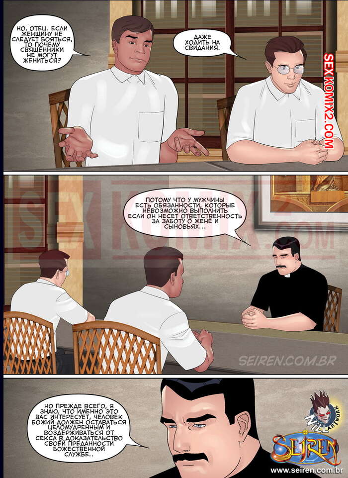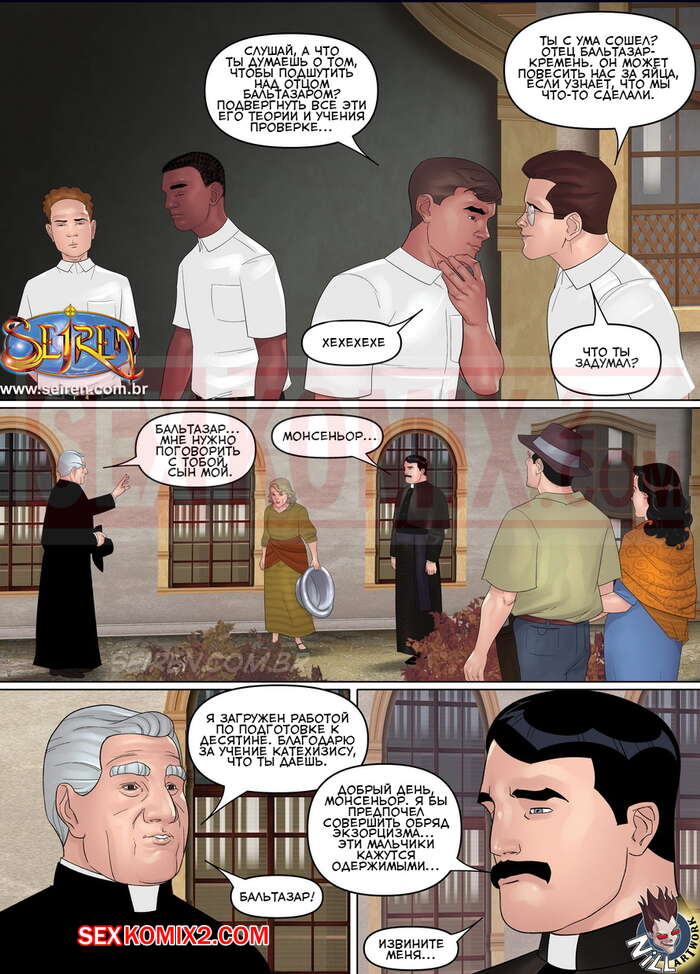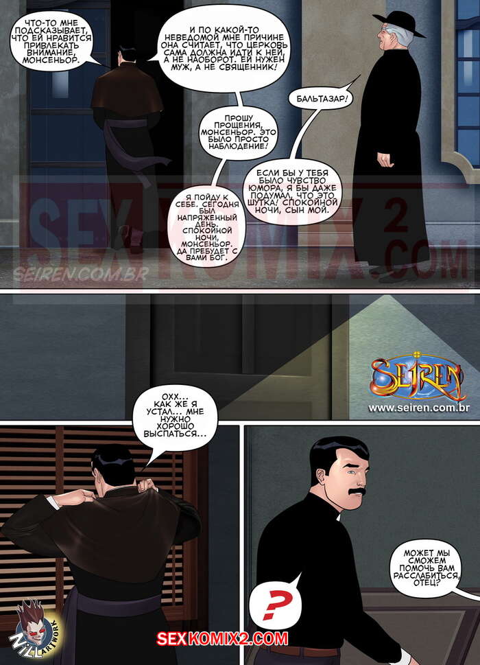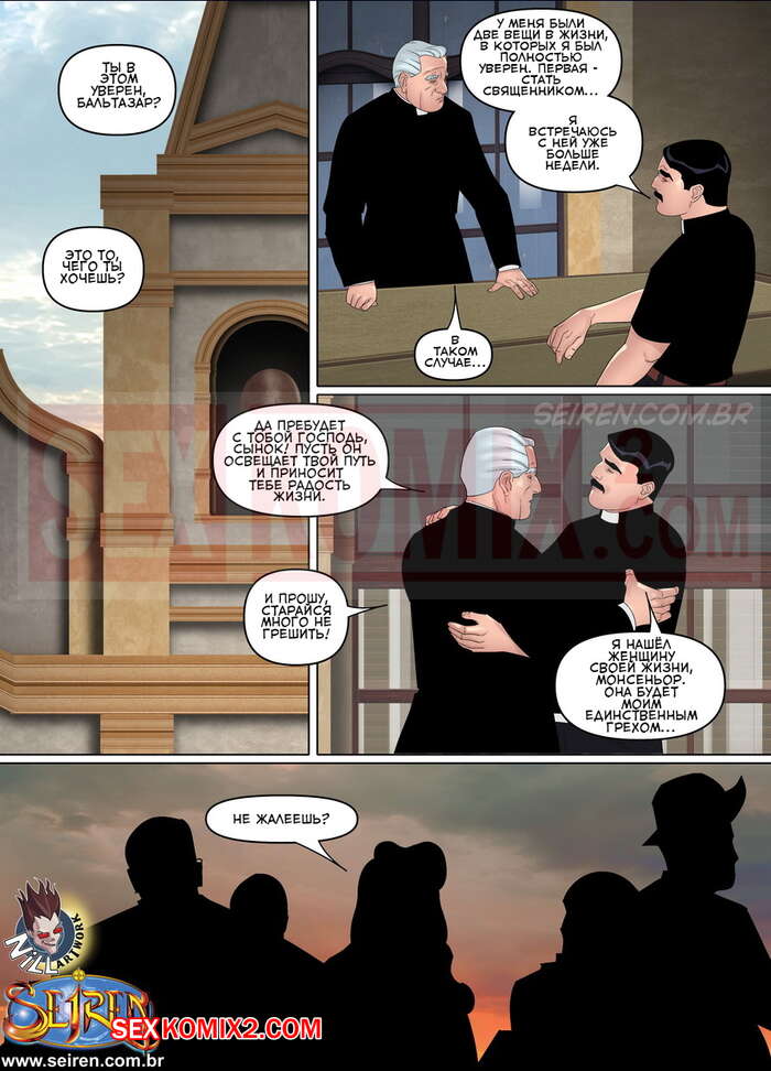 Порно комикс Параллельно. Часть 10. Бальтазар. Parallel Baltazar Мужичек пастор решил немного расслабиться и повеселиться с девушками. Ночью он встретился с двумя красотками милфами, которые уложили его на кровать и хорошенько позволили ему себя выебать.